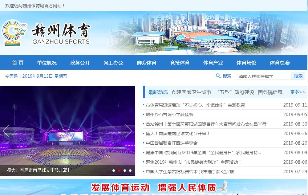 赣州市体育局主要职责:(一) 贯彻执行党和国家体育工作方针、政策、法律、法规,制定体育发展战略,编制体育事业的中长期发展规划,拟定全市体育工作的规定和发展计划,并监督实施。负责体育行政执法和执法监督工作,指导和推动体育体制改革。(二) 贯彻《全民健身条例》,推行全民健身计划,指导并开展群众性体育活动,实施国家体育锻炼标准,开展国民体质监测;指导和配合各部门、各行业开展体育活动,指导和推动学校体育、城市体育、农村体育工作及其他社会体育的发展。(三)统筹规划竞技体育发展,研究和平衡全市性体育竞赛、竞技运动项目与重点布局;抓好优秀运动队建设,指导、审批运动队参加国内、省内重大比赛活动;研究提出体教结合后备体育人才培养的发展规划并组织实施。(四) 组织、指导市运会和其他综合性及单项运动会等体育活动;指导、协调、监督全市性的体育竞赛工作;负责在我市举办的国内大型比赛的指导、组织、协调;指导参加省级以上综合性运动会、单项比赛的组织管理及统筹安排;(五)组织和指导体育宣传和体育领域重大科技研究的攻关和成果推广;制定体育教育规划,发展体育教育;组织开展反兴奋剂工作。(六) 研究制定体育产业发展规划,依法管理体育市场;规划、协调全市体育场馆设施建设布局,指导、规范各类场馆设施建设。(七) 制定体育人才发展规划;指导县级政府体育行政部门工作;协调区域性体育发展。(八) 指导体育总会、各单项体育协会等社会团体的工作;负责全市性体育社团的资格审查。(九) 承办市政府交办的其他工作。