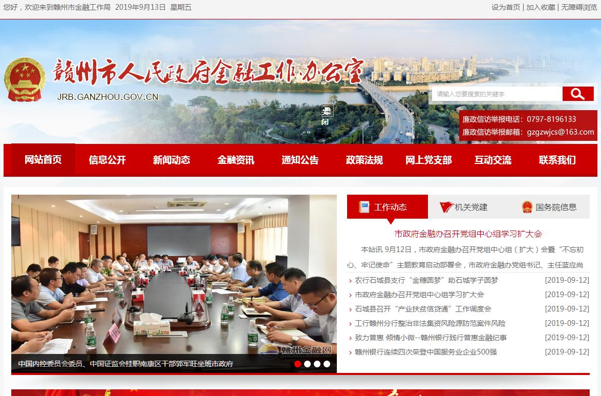 赣州市人民政府金融工作办公室是在实施“对接和珠闽,建设新赣州”发展战略大背景下,按照市委二届三次会议提出的“要在全省率先建立和完善社会主义市场经济体制”的要求,配合“十大体系”建设而设立的。2004年7月最初成立时设在市政府办公厅,为科级单位。2005年8月升格为市政府直属正县级事业单位。赣州市金融工作局是全省最早设立的地方政府主管金融事务的工作单位,是市政府协调金融工作的专门机构。2019年1月,更名为赣州市人民政府金融工作办公室。其主要职责是:(一)拟订我市落实中央、省金融政策的实施意见,督促驻市金融机构落实好国家、省和市委、市政府的决策部署,协调和支持各金融机构创新业务,引导银行信贷服务实体经济,促进多层次资本市场健康发展,引导保险业服务地方经济社会发展。(二)研究拟订全市金融发展中长期规划和工作计划;研究分析经济金融形势,提出优化金融环境、改善金融服务、促进我市金融业发展的政策建议。(三)负责区域性金融中心和省域金融次中心建设的组织实施;负责全国普惠金融改革试验区的推进实施;指导和推进金融市场体系建设;指导和推进农村金融改革与发展。(四)负责对全市小额贷款公司、融资担保公司、区域性股权市场、典当行、融资租赁公司、商业保理公司、地方资产管理公司实施监管;强化对全市投资公司、开展信用互助的农民专业合作社、社会众筹机构、地方各类交易场所的监管;负责地方金融业统计工作。(五)牵头组织开展全市防范和处置非法集资、互联网金融风险专项整治,配合查处、打击非法金融机构和非法金融业务活动。牵头地方金融信用体系建设。建立健全地方金融风险监测防范与处置机制,牵头维护全市金融稳定。(六)配合中央、省金融管理部门派出机构开展金融监管;配合、协助省地方金融监管局对省属驻市金融企业进行监管。受市政府委托,负责对各县(市、区)政府金融工作进行业务指导、考核评估和提出风险问责的建议等工作。(七)负责全市企业上市协调工作,指导和推动拟上市公司资产重组及融资;协助做好证券期货机构和上市公司规范发展工作。(八)推进地方金融机构的改革重组。协调推进地方法人金融机构的发起设立和规范发展;组织推进金融科技创新。开展金融对外合作交流,统筹协调与金融机构的合作。(九)统筹推进全市金融人才队伍规划与建设工作,指导市内相关用人单位的金融人才引进、培育和使用等工作。承担对地方金融机构的相关业务管理工作,参与对地方金融机构及其高管人员的业绩考核,对市国资委关于市属国有金融企业高管人员的提名、任免提出意见。(十)领导和指导与行政机关脱钩后全市性金融行业协会商会的党的建设工作;协助金融监管机构对地方金融机构及金融行业自律组织的监管;负责组织实施市政府对地方金融机构和地方金融中介组织的管理;负责地方国有金融机构监事会的日常管理工作,制定地方金融业从业人员行为管理规范;负责与驻市金融机构的联系。(十一)完成市委、市政府交办的其他任务。