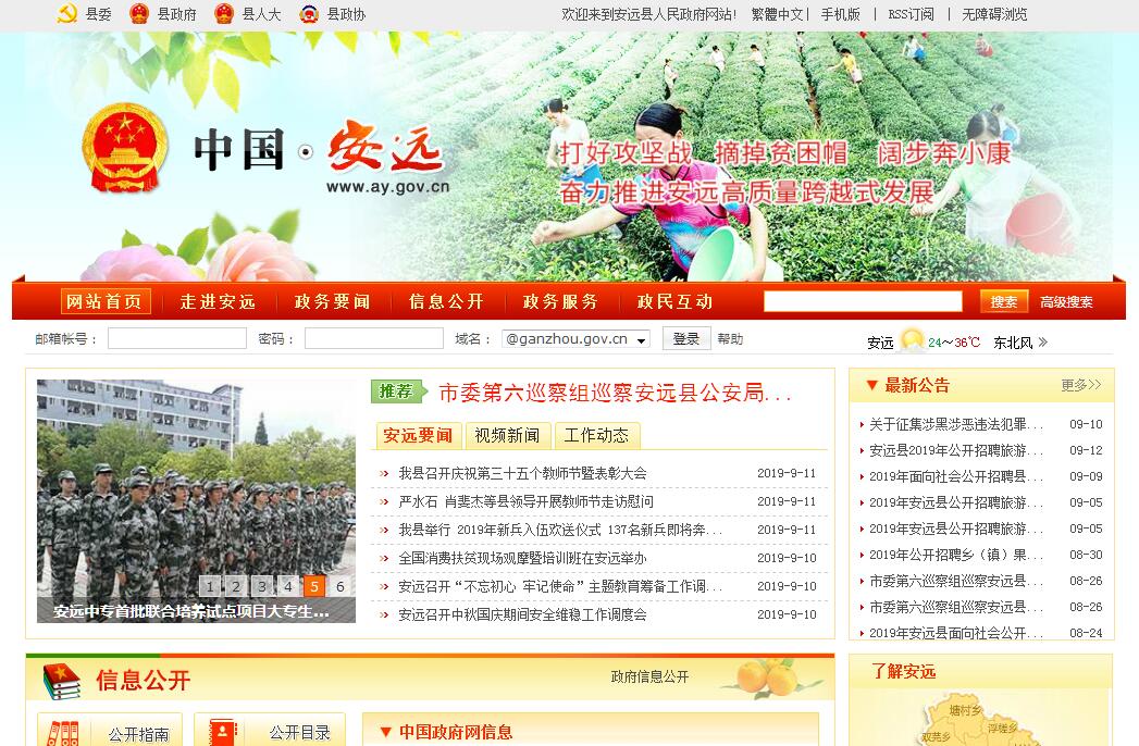 安远县位于江西省南部,地处闽粤赣三省交汇处,因境内有安远水而得名。全县辖10乡8镇、152个行政村,国土面积2375平方公里,人口40万。安远是人文宝地。安远历史悠久,在虞夏时期为禹贡扬州地,春秋属吴,战国属楚,秦属九江郡,汉属豫章郡雩都县,南朝梁大同十年(公元544年)建县,迄今1475年。安远底蕴深厚,客家文化源远流长,是国家首批非物质文化遗产赣南采茶戏的发源地、“中国采茶戏艺术之乡”,江西首个“中国楹联之乡”。安远古迹甚多,拥有多家国家重点文物保护单位。其中,建于清道光二十二年(公元1842年)的全国最大客家方型围屋东生围,建于清顺治九年(1652)的永镇廊桥,建于宋绍圣四年(公元1097年)的无为寺塔等久负盛名。安远民风淳朴,向来有崇文尚德、尊师重教的优良传统,是远近闻名的教育大县,是赣州市自2010年以来唯一考取清华北大不断线的县份。安远是红土圣地。安远是苏区全红县,是人民军队建设史上的重要转折地、中央苏区反“围剿”斗争的重要前沿阵地、苏区精神的重要发祥地。1927年10月22日,朱德、陈毅等率南昌起义军余部辗转来到天心圩,进行了著名的“天心整军”。“天心整军”是“赣南三整”的开端,是我军从失利走向胜利的重要转折点,是人民军队建军思想的重要源头。苏区时期,安远是会(昌)寻(乌)安(远)中心县委的组成县份,全县10.01万人口中,就有1.26万人参加红军、1.2万人支前作战,平均每8人就有一人参加红军,有名有姓的烈士2136人,为革命胜利作出了不可磨灭的贡献。安远是生态福地。安远生态环境优越,全县森林覆盖率84.3%,是全国平均水平的两倍,荣膺“全国生态文明先进县”“全省首批生态文明先行示范县”和“省级森林城市”。安远旅游资源丰富,境内的三百山是粤港地区饮用水东江的源头,是国家级森林公园、国家级风景名胜区、国家4A级旅游景区,是全国唯一对香港同胞具有饮水思源意义的旅游胜地。三百山下的虎岗温泉富含硒等30余种对人体有益的矿物质微量元素,是全国唯一水火同源的温泉,也是全省第二大天然温泉群。东江源旅游度假区是全市唯一省级旅游度假区,东生围围屋群旅游区是国家4A级旅游景区。安远是资源富地。安远土地富饶,盛产赣南脐橙、红薯、食用菌、百香果等农特产品,是全国第一个无公害脐橙生产示范基地县、全国脐橙类首个国家级出口食品农产品质量安全示范区,是赣南农特产品集散中心。安远矿产丰富,已探明稀土、钼、电气石等36个矿种,稀土稀有金属元素含量位居全国前列,钼金属储量位居全国第三,电气石储量居全省前列。安远小吃众多,是“中国客家小吃之乡”,以大米为主原料做成的客家特色小吃种类繁多、口味独特,“安远三鲜”系列特色小吃享誉四方,“安远三鲜粉”荣获“中国地域十大名小吃”称号。安远是开放高地。安远有着开明开放的优良传统,上世纪九十年代,开创了赣南思想解放的先河,创造了轰动一时的“安远现象”,对外商业贸易一度繁荣活跃。安远区位优势明显,是珠江三角洲、闽东南三角区的直接腹地,是内地通往沿海地区的重要通道,正加速融入海西经济区、粤港澳大湾区等沿海重要经济圈。安远交通条件便利,形成了以宁定、寻全两条高速为主骨架,三条国道和三条省道为主通道,县乡村公路为主脉络,外通内畅、北上南下、东接西连的现代综合交通网络,被交通运输部、农业农村部、国务院扶贫办联合授予“四好农村路”全国示范县。安远物流体系完善,建有中部六省唯一的县级快递分拨中心,建立了覆盖全县所有行政村的快递物流站点。安远营商环境良好,打造了全省一流的县级“政务超市”,构建了快捷高效的政务服务体系。