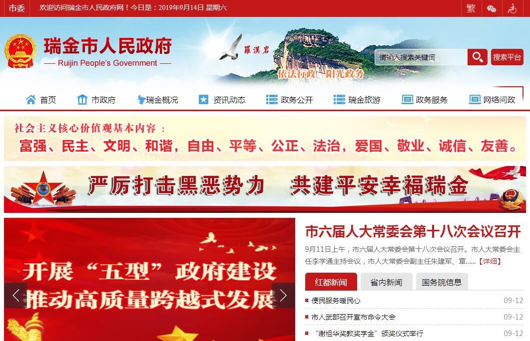 瑞金,由江西省直辖,赣州市代管的县级市,位于江西省东南部,赣州市东部,武夷山脉南段西麓,赣江东源贡水上游。东界福建省龙岩市长汀县,南邻会昌县,西连于都县,北接宁都县,东北毗石城县。瑞金总面积2448平方千米,下辖7镇10乡,2017年户籍人口为704202人。瑞金是一个红色与绿色并存的城市。瑞金是著名的红色故都、共和国摇篮、中央苏区时期党中央驻地、中华苏维埃共和国临时中央政府诞生地、中央红军二万五千里长征出发地之一、是全国爱国主义和革命传统教育基地;是中国红色旅游城市。2014年5月27日,瑞金市列入江西省直管县体制改革试点。2015年7月,经国家旅游局正式批复,瑞金共和国摇篮景区成为江西第七、赣州首个5A级旅游景区。2015年8月,国务院同意将瑞金市列为国家历史文化名城。2017年,瑞金市实现地区生产总值1491576万元,比上年增长9.3%,其中:第一产业增加值228061万元,增长4.4%;第二产业增加值512281万元,增长8.9%;第三产业增加值751234万元,增长11.0%。三次产业结构比由去年的15.1:32.9:52调整为15.3:34.3:50.4,对经济增长的贡献率分别为7%、32.4%、60.6%。人均生产总值23477元,增长10.4%,按年均汇率折算约为3727美元。2018年7月29日,瑞金市正式脱贫摘帽,退出贫困市序列。2018年12月,瑞金市喜获“2018年度中国十佳脱贫攻坚与精准扶贫示范县市”。瑞金市是“无废城市”建设特例市。