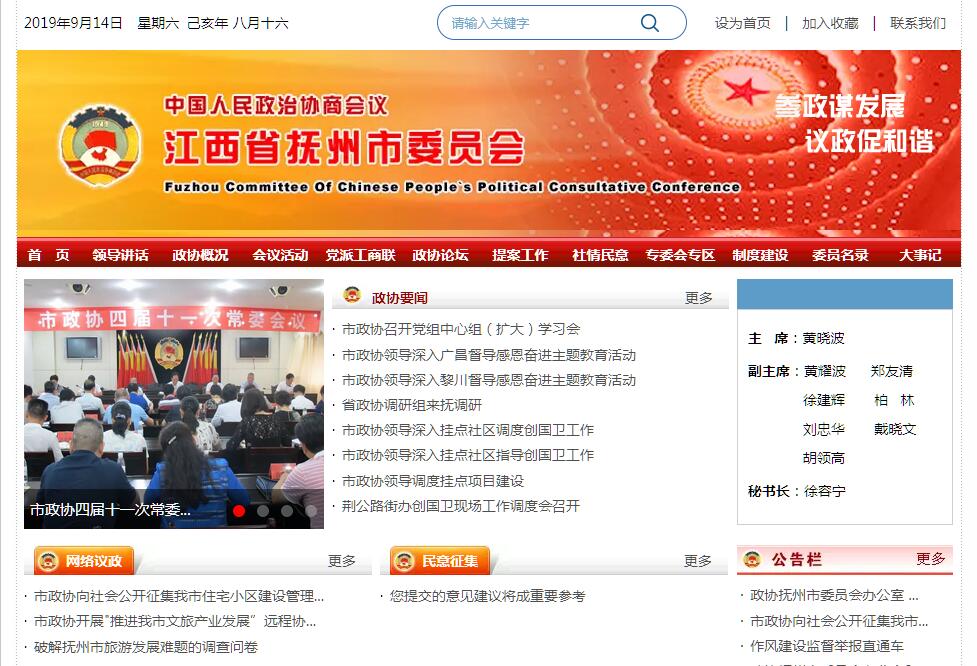 中国人民政治协商会议江西省抚州市委员会(简称政协抚州市委员会或抚州市政协)是中共抚州市委领导的具有广泛代表性的地方爱国统一战线组织。人民政协在抚州市的地方组织,诞生于1985年6月,名称为中国人民政治协商会议江西省委员会抚州地区联络处。1995年8月更名为政协江西省委员会抚州地区工作委员会。地区政协工委在中共抚州地委领导下工作,业务上受政协江西省委员会的指导。2000年9月26日,按照国务院、省人民政府关于抚州撤地设市的有关文件精神,在中共抚州地委的领导下,正式成立了政协抚州市第一届委员会第一次会议筹备委员会。同年10月17日至18日,中国人民政治协商会议抚州市第一届委员会第一次会议在抚州隆重召开,选举王样生为第一届市政协主席,黄昕明、刘定、邱敬禹、陈其辉、李抚生、汪重阳、陈云斐、邹俐菁、胡淑珠为副主席,汪伟中为秘书长,及常务委员会组成人员。政协抚州市第一届委员会正式诞生。本届政协委员有222人,由中共、民革、民建、民盟、九三、农工党、无党派、共青团、青联、工会、妇联、科协、科技、侨联、台联、民族宗教、社会福利、文艺体育、社科、新闻出版、经济、工商联、农业、教育、医药卫生、特邀共26个界别组成。2002年3月,政协抚州市一届三次会议通过决定接受王样生辞去市政协第一届委员会主席、委员职务,增选王晓媛为副主席。2002年9月,政协抚州市一届四次会议选举李品行为市政协第一届委员会主席。2004年3月,政协抚州市一届六次会议通过决定接受汪伟中辞去市政协第一届委员会秘书长职务,选举徐容宁为秘书长。2005年3月,政协抚州市一届七次会议通过决定接受黄昕明辞去市政协第一届委员会副主席和委员职务。2006年4月,政协抚州市一届八次会议通过决定接受胡淑珠辞去市政协第一届委员会副主席和委员职务。政协抚州市第二届委员会第一次会议于2006年12月3日至5日在抚州召开,会议选举李品行为第二届市政协主席,赵恩洪、周琪、陈云斐、邹俐菁、黄德宪、廖建辉、何建辉、郑友清为副主席,徐容宁为秘书长,及常务委员会组成人员。本届政协委员有315人,由中共、共青团和青联、农业、民革、民盟、民建、民主促进会、农工党、九三学社、无党派人士、工会、妇联、台联和侨联、少数民族宗教、工商联、经济、社会保障、教育、文化体育、社科、医药卫生、法律、科学技术、新闻出版、特邀共25个界别组成。政协抚州市第二届委员会第五次会议于2010年1月17日至19日在抚州召开,会议通过《关于同意李品行和赵恩洪、邹俐菁同志辞去政协抚州市第二届委员会主席和副主席职务的决定》,会议选举王晓媛为市政协主席、黄耀波为市政协副主席。政协抚州市第三届委员会第一次会议于2011年9月22日至24日在抚州召开。会议选举谢发明为第三届市政协主席,黄德宪、陈云斐、廖建辉、郑友清、贾益纲、黄耀波、周付德、蔡青为副主席,徐容宁为秘书长,及常委会组成人员。本届政协共有委员330人,由中共、民革、民盟、民建、民主促进会、农工党、九三学社、无党派人士、工会、共青团和青联、妇联、工商联、科协、科学技术、侨联和台联、文化体育、社科(法律)、经济、农业、教育、新闻出版、医药卫生、社会福利与社会保障、少数民族宗教、特邀共25个界别组成。政协抚州市第三届委员会第四次会议于2015年1月19日至21日在抚州召开,会议通过《关于同意黄德宪、廖建辉辞去政协抚州市第三届委员会副主席的决定》,会议选举徐建辉、柏林为副主席。政协抚州市第四届委员会第一次会议于2016年10月31日至11月2日在抚州召开,会议选举黄晓波为第四届市政协主席,黄耀波、刘菊娇、郑友清、周付德、徐建辉、柏林、刘忠华、戴晓文为副主席,徐容宁为秘书长,及常委会组成人员。本届政协共有委员350人,由中共、民革、民盟、民建、民主促进会、农工党、九三学社、无党派人士、工会、共青团青联、妇联、工商联、科协、科学技术、侨联和台联、文化体育、社科、经济、农业、教育、新闻出版、医药卫生、社会福利与社会保障、少数民族宗教、特邀共25个界别组成。政协抚州市第四届委员会第三次会议于2018年1月7日至9日召开,会议通过《关于同意刘菊娇、周付德辞去政协抚州市第四届委员会副主席的决定》,会议选举胡领高为副主席。目前,四届市政协内设办公室和提案委员会、文化文史和学习委员会、经济委员会、人口资源环境委员会、教科卫体委员会、社会和法制委员会、港澳台侨外事和民族宗教委员会、农业和农村委员会等八个专门委员会,现有362名委员。四届市政协在中共抚州市委的正确领导和市人民政府的大力支持下,坚持以习近平新时代中国特色社会主义思想为指导,深入贯彻落实习近平总书记关于加强和改进人民政协工作的重要思想,牢牢把握团结和民主两大主题,广泛动员和组织政协各参加单位和政协委员,围绕中心,服务大局,着眼发展,关注民情,认真履行政治协商,稳步推进民主监督,扎实开展参政议政,政协工作生动活泼、有序推进、富有成效,为促进我市经济发展和社会和谐稳定作出了积极贡献,为进一步开创政协工作新局面打下了坚实的基础。