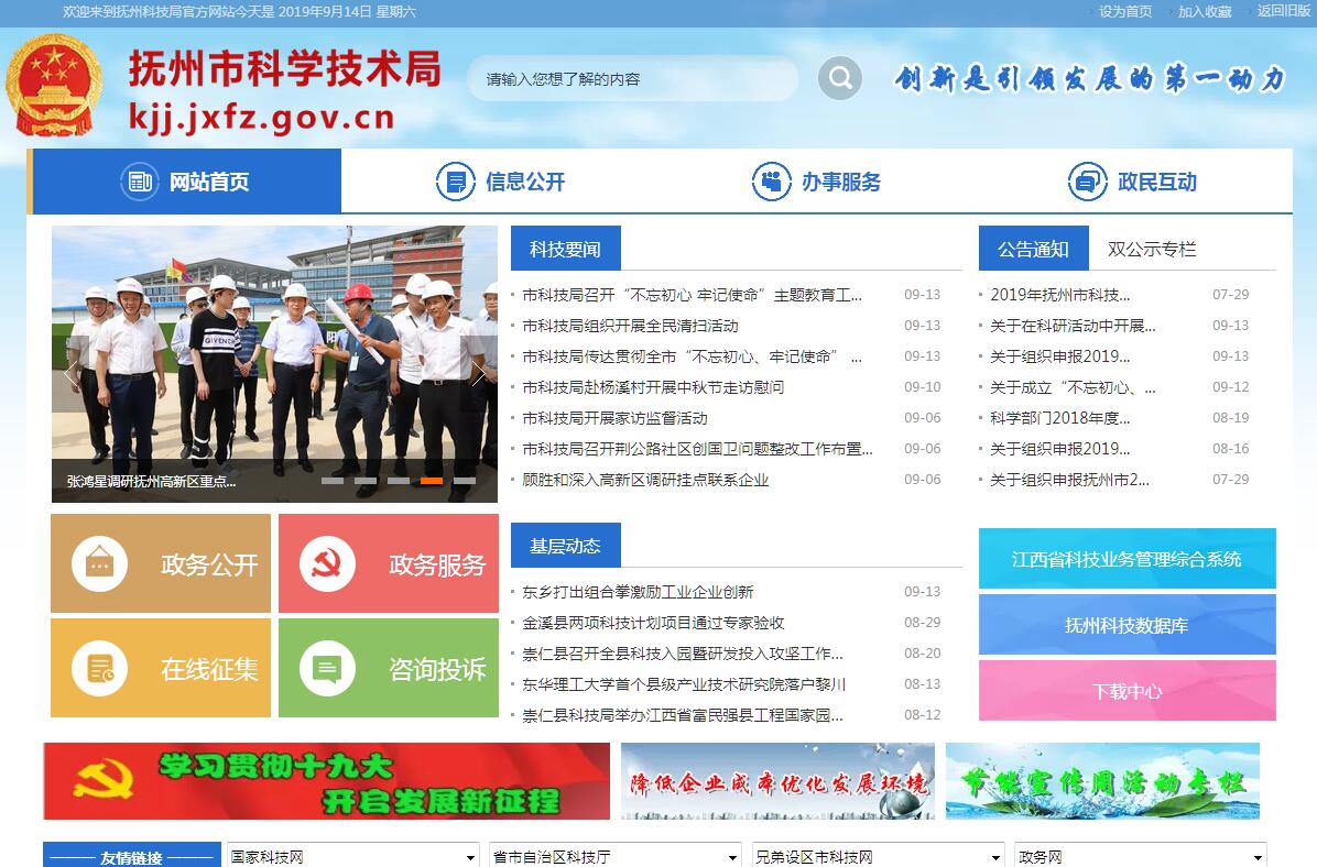 抚州市科学技术局贯彻落实党中央关于科技创新工作的方针政策和决策部署,在履行职责过程中坚持和加强党对全市科技创新工作的集中统一领导。其主要职责是:(一)研究提出科技创新驱动经济与社会发展的政策措施,深化科技体制改革,拟订科技发展规划、激励企业技术创新、科研机构改革与发展的政策和建议,并监督实施。(二)负责组织制订实施各类科技计划和重大科技工程,统筹协调基础研究、应用技术研究、社会公益性技术研究以及国民经济与社会发展重大关键技术攻关,推动科技创新体系建设,协调推进创新型城市建设;推进科技监督评价体系建设和科研诚信管理工作。(三)负责各类科研机构业务管理及科技创新平台、新型研发机构建设的统筹协调工作。拟订重大创新基地建设、科研条件保障的规划和措施,推进科技资源共享。(四)负责高新技术发展及产业化工作,指导和协调高新技术产业开发区建设相关工作。组织指导高新技术企业、科技中小型企业培育与技术创新工作,推动科技知识产权创造、运用工作,提升企业自主创新能力。(五)组织科技促进现代农业发展的关键技术攻关和成果应用示范,推动科技扶贫工作,促进农业科技进步、乡村振兴和县域创新驱动发展。(六)组织引导社会发展领域及生态环境建设的关键技术攻关和成果应用示范,促进以改善民生为重点的社会事业发展,为安全生产工作提供科技支撑,督促直属科研单位落实安全生产责任。(七)负责科技成果转移转化及产业化,促进产学研深度融合,推动科技服务业、技术市场和科技中介组织发展,组织相关重大科技成果应用示范。 (八)负责本部门预算中的科技专项经费决算及经费使用的监督管理,会同有关部门提出优化配置科技资源的政策措施建议,深入推进加大研发投入攻坚行动,发展科技金融,推动多元化科技投入体系建设。(九)组织实施科技人才计划,推动科技创新人才和创新团队建设,负责科技创新奖励工作。(十)负责技术合同认定登记工作,制定科技保密管理办法,负责相关科技统计管理。(十一)组织协调对外科技合作交流、科技外事工作,承担引进国外智力和重点外国专家服务工作,归口管理出国(境)培训工作。(十二)承担推进科技军民融合发展、国防科技动员工作。(十三)完成市政府交办的其他任务。