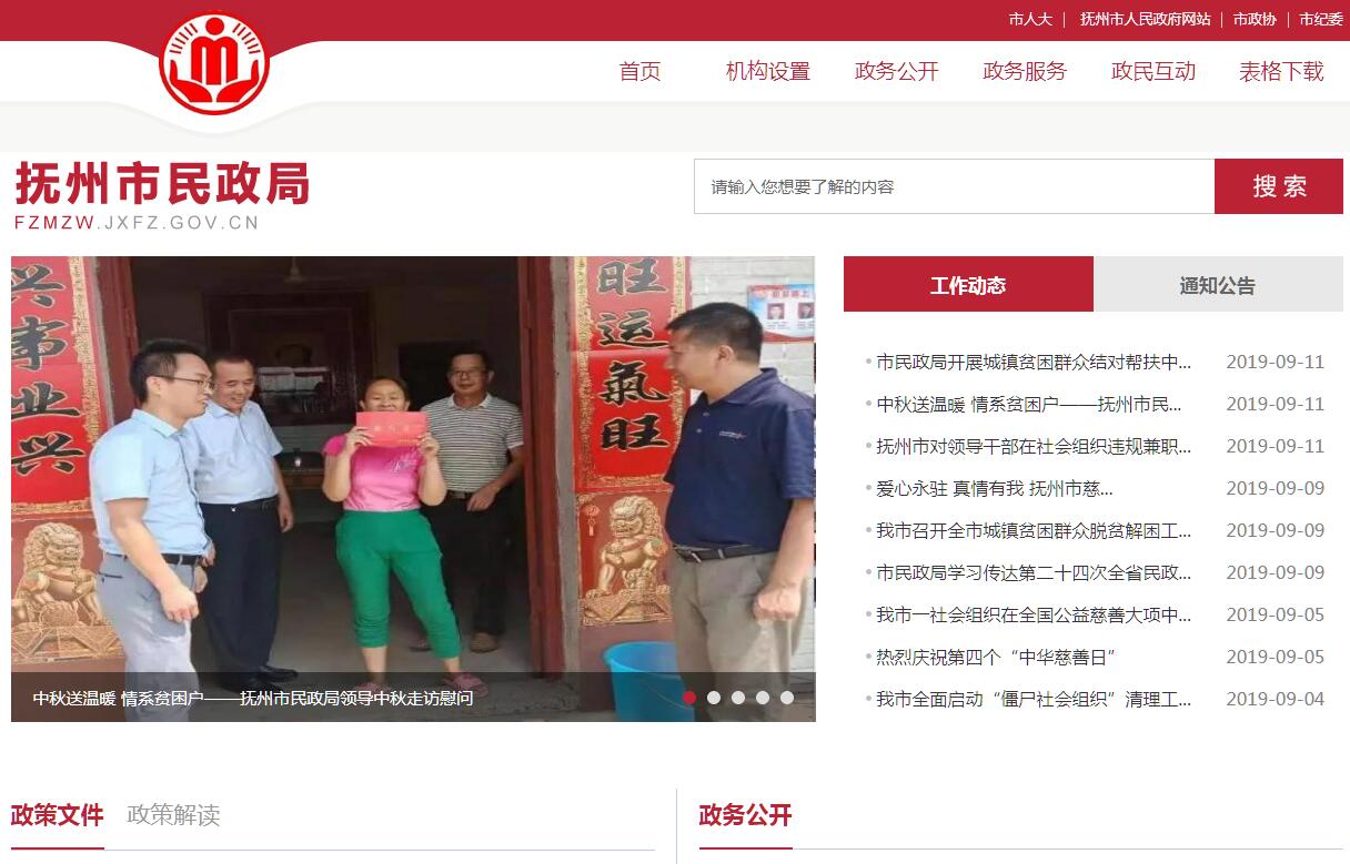 抚州市民政局是政府管理社会行政事务的重要职能部门,担负着城乡低保、城乡大病医疗救助、救灾救济、五保供养、优抚安置、救助管理、村民自治、城乡社区建设、社会福利事业、慈善事业、社会团体和民办非企业单位管理、行政区划和地名管理、勘界划定、婚姻管理、殡葬管理、儿童收养和老龄工作等三十二项具体业务工作,同广大人民群众的切身利益,尤其是与困难群众和弱势群体有着紧密的联系,担负着构建和谐社会的重要职责。内设职能科室7个:办公室、优抚科(另挂抚州市拥军优属拥政爱民工作领导小组办公室、抚州市复员退伍军人安置办公室、市军队离休退休干部安置办公室牌子)、救灾科、基层政权和社区建设科(另挂抚州市地名办公室、抚州市行政区域边界线管理办公室牌子)、社会福利科、社会事务科(救助管理科与之合署办公,另挂民间组织管理局牌子)、老龄工作科(抚州市老龄工作委员会办公室的办事机构)。直属事业单位12个:最低生活保障办公室、救助管理站、军队离退休干部休养所、殡葬管理处、殡葬综合管理执法大队、烈士陵园管理处、社会福利中心、慈善总会办公室、减灾备灾中心、军供站、家庭经济状况核对中心,其他福利中心。局机关现有行政编制17个,工勤编2个,机关在编19人。正科级局属单位12个,总编制127个,科级职数17个。