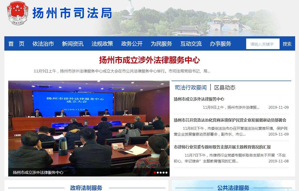 扬州市司法局,为市政府工作部门,正处级建制。其主要职责是:(一)贯彻执行国家司法行政工作方针、政策、法律、法规和规章,拟订全市司法行政工作的规范性文件,编制全市司法行政工作的中长期规划、年度工作计划并监督实施。指导全市司法行政系统的信息化建设。(二)协调指导全市社区矫正工作。承担市社区矫正领导小组办公室日常工作。(三)拟订全市法制宣传与普法教育规划并组织实施,指导各县(市、区)、各行业法制宣传、依法治理工作。(四)指导监督全市律师、公证工作,综合管理社会法律服务机构,管理监督在我市设立的外国(境外)律师机构。(五)指导、管理全市的法律援助和“12348”法律服务工作。(六)指导、管理服务社会的司法鉴定工作。(七)指导监督基层司法所建设和人民调解工作,指导全市社会矛盾纠纷调解工作,参与社会治安综合治理工作,承担市社会矛盾纠纷调解工作指导办公室的日常工作。(八)指导刑释解教人员帮教安置工作,承担市帮教安置领导小组办公室的日常工作。(九)指导协调全市法学教育工作,开展法学理论研究。(十)组织实施全市国家司法考试工作。(十一)指导、管理全市司法行政系统的法制工作,负责司法行政规范性文件的起草、清理、汇编工作,指导全系统行政复议、应诉工作;负责对市仲裁委机构的有关管理工作;管理、指导全市司法行政外事和涉港澳台工作。(十二)指导全市司法行政系统的计划、财务工作和行政装备建设;管理直属单位的国有资产,负责内部审计工作。(十三)主管全市公证、律师和司法鉴定专业技术职务的评审工作。(十四)指导、管理全市公职律师工作。(十五)承办市政府交办的其他事项。