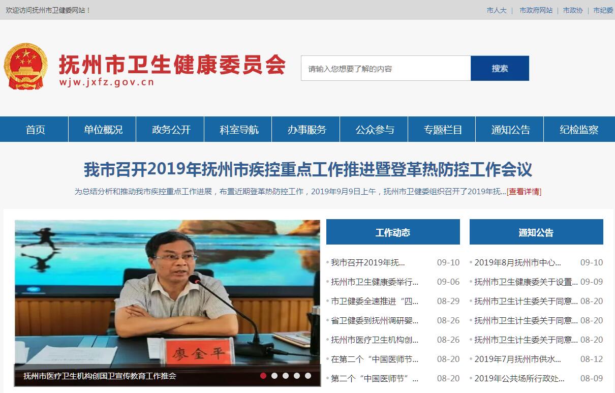 抚州市卫生健康委员会主要职责:(一)贯彻落实国家和省有关国民健康的政策、卫生健康事业发展的法律法规、政策、规划,组织起草有关地方性法规、市政府规章草案和地方标准。拟订全市卫生健康事业发展相关政策、规划并组织实施,统筹规划卫生健康资源配置,指导区域卫生健康规划的编制和实施。制定并组织实施推进卫生健康基本公共服务均等化、普惠化、便捷化和公共资源向基层延伸等政策措施。(二)落实公立医院党建工作责任。指导协调全市卫生健康行业党的建设工作,统筹推进全市公立医院、基层医疗卫生机构、计生服务机构、民营医疗机构等党的建设工作。建立公立医院党建目标责任制和党建工作质量评价考核制度。(三)协调推进全市深化医药卫生体制改革,研究提出深化全市医药卫生体制改革政策、措施的建议。组织深化全市公立医院综合改革,推进管办分离,健全现代医院管理制度,制定并组织实施推动卫生健康公共服务提供主体多元化、提供方式多样化的政策措施,提出医疗服务和药品价格政策的建议。(四)贯彻执行国家免疫规划,制定并组织落实疾病预防控制规划以及严重危害人民健康公共卫生问题的干预措施。完善疾病预防控制体系。(五)负责卫生应急工作。指导卫生应急体系和能力建设。组织和指导突发公共卫生事件的预防控制、应急处置和各类突发公共事件的医疗卫生救援。根据授权发布突发公共卫生事件应急处置信息。(六)组织拟订并协调落实应对人口老龄化政策措施,负责推进老年健康服务体系建设和医养结合工作。(七)贯彻落实国家药物政策和国家基本药物制度,组织拟订全市药物使用的相关政策措施,开展药品使用监测、临床综合评价和短缺药品预警,提出我市基本药物价格政策的建议。组织开展食品安全风险监测评估,贯彻落实和宣传食品安全地方标准,组织食品安全企业标准备案。(八)负责卫生健康系统安全管理工作,负责职责范围内的生态环境保护工作,承担职业健康监督管理职责。负责职责范围内的职业卫生、放射卫生、环境卫生、学校卫生,公共场所卫生、饮用水卫生等公共卫生的监督管理,负责传染病防治监督,健全卫生健康综合监督体系。(九)制定医疗机构、医疗服务行业管理办法并监督实施,建立医疗服务评价和监督管理体系。会同有关部门实施卫生健康专业技术人员资格标准。制定并组织实施医疗服务规范、标准和卫生健康专业技术人员执业规则、服务规范。(十)负责计划生育管理和服务工作,开展全市人口监测预警,研究提出全市人口与家庭发展相关政策建议,完善我市计划生育政策。(十一)指导全市卫生健康工作,统筹推进全市卫生健康人才队伍建设,牵头制定和落实高层次人才医疗保障服务政策。指导基层医卫生、妇幼健康服务体系和全科医生队伍建设。推进卫生健康科技创新发展。(十二)负责市保健对象的医疗保健工作,负责全市重要会议与重大活动的医疗卫生保障工作。(十三)承担全市中医药管理职责。承担市老龄工作委员会日常工作。指导市计划生育协会的业务工作。(十四)完成市委、市政府交办的其他任务。