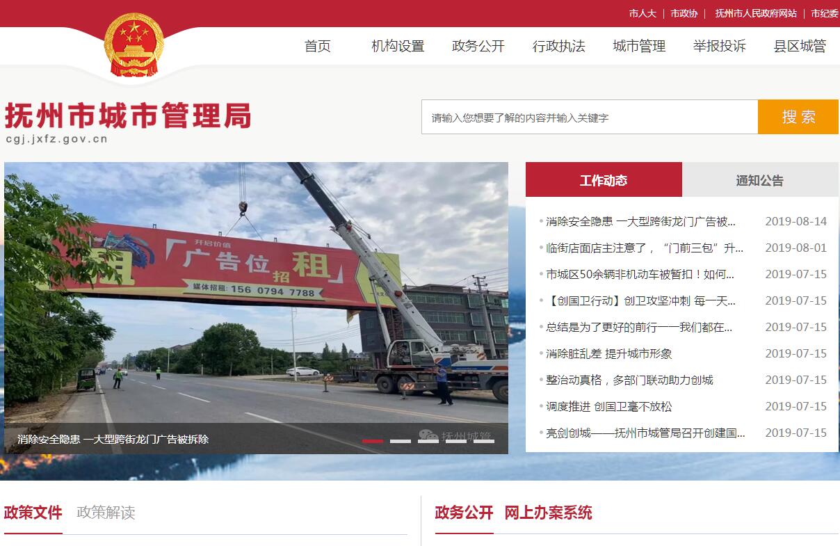 抚州市城市管理局主要职责:(一)行使市容环境卫生管理方面法律、法规、规章规定的行政处罚权。(二)行使市政管理方面法律、法规、规章规定的行政处罚权。(三)行使城市绿化管理方面法律、法规、规章规定的行政处罚权。(四)行使人民防空管理方面法律、法规、规章规定的行政处罚权。(五)行使房产管理方面法律、法规、规章规定的对非住宅装饰装修工程投资在30万元以下或者建筑面积在300平方米以下未办理手续行为的行政处罚权。(六)行使环境保护管理方面法律、法规、规章规定的对大气、水、噪声、固体废弃物污染的部分行政处罚权。(七)行使工商行政管理方面法律、法规、规章规定的对无照商贩的行政处罚权。(八)行使公安交通管理方面法律、法规、规章规定的对违法在人行道停车行为的行政处罚权。(九)行使民政管理方面法律、法规、规章规定的对违法在公共场所办丧事行为的行政处罚权。(十)行使文化管理方面法律、法规、规章规定的对违法举办营业性演出行为的部分行政处罚权。(十一)贯彻执行国家、省有关城市管理的法规、行政规章;研究制定城市管理中、长期规划和年度工作计划及管理目标,制定相关的政策措施,并组织实施。(十二)负责全市环境卫生、市政设施、城管执法的行业管理工作,指导、协调、检查、督促各县(区)环境卫生、市政设施、城管执法工作;负责市本级的环卫基础设施、设备的建设和维护管理;检查、监督、落实“门前三包”责任制;负责对从事环卫作业经营单位的资质审查和管理工作。(十三)负责市中心城区的市容环境综合整治工作,如户外广告、道路占用、景点景区、停车场、重要公共场所设施、早点夜市等方面的管理;负责大型户外广告设置、店(招)牌设置及其它各类户外广告设置的审批及管理;负责对机动车辆容貌管理;负责全市建筑物清洗作业经营单位资质审查、市政施工企业资质审查和管理工作。(十四)负责制定全市城市文明施工、渣土调剂清运、建材文明运输及施工场地环境卫生管理规定,并监督实施。(十五)负责中心城区道路、排水、污水处理等市政设施的维护、管理以及破道、占道的审批和管理;负责人行道的车辆停放及管理;负责本局实施的市政建设工程项目的审核、预决算审查、质量保证和验收工作。(十六)参与城市规划和全市城区建设、旧城区改造和综合开发建设项目的可行性研究、方案审查和竣工验收备案工作。(十七)指导、协调各县(区)的城市管理工作。(十八)承办市政府交办的其他事项。