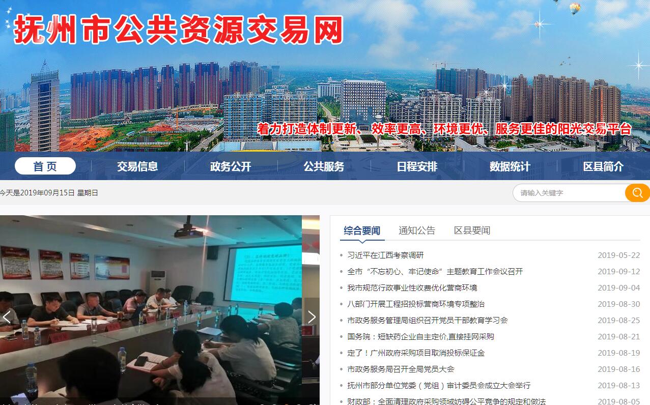 抚州市公共资源交易中心,原名抚州市招投标交易中心。中心于2004年5月10日开始运行,2007年5月,经市委、市政府研究,确定中心为参照公务员管理的副县级事业单位,直属市政府管理,内设办公室、业务科和财务科。目前,中心归属于市行政服务中心管委会管理,定编11人,在编11人。中心是集中进行工程建设招投标、土地交易、产权交易、政府采购等活动的有形市场。2016年7月,在市公共资源交易中心增挂市农村综合产权交易中心牌子,实行“一个机构、两块牌子”。中心位于市规划展示馆四楼,有2200多平方米的交易活动场地,设有提供交易活动管理和受理的办公区;提供信息发布、拍卖、招标的开标区;开展独立评标,实行封闭管理的评标区和询标区。配备有完善的计算机管理系统、办公自动化系统、声像监控录制系统、通讯信号屏蔽系统、LED显示屏、投影仪等交易服务设施。中心在市委、市政府的领导下,按照“政府引导市场,市场公开交易、交易规范运作、统一加强监管”的要求,坚持“明确机构、理顺关系、健全制度、规范行为”的原则,为我市招投标活动提供“交易服务、场地服务、信息服务、监管服务”四个服务平台,实行统一进场交易、统一信息发布、统一专家库管理、统一现场监管、统一收费服务的“五统一”运作模式。