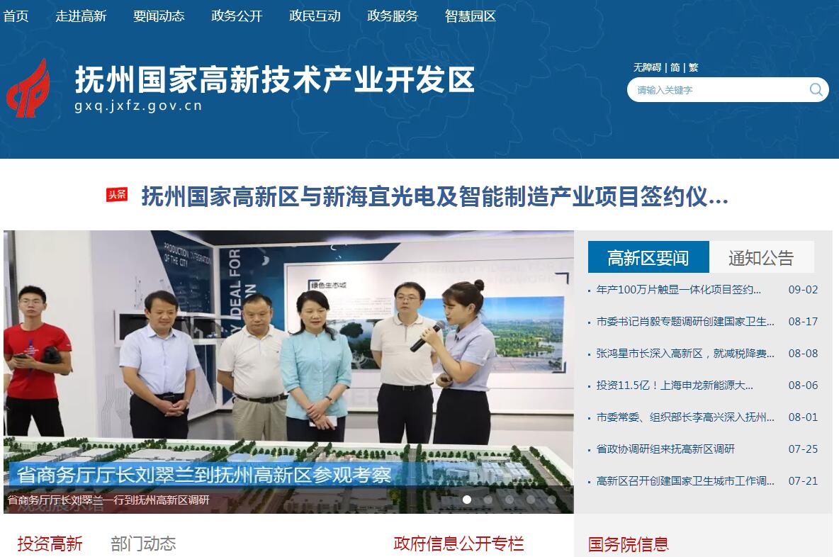 抚州高新技术产业开发区前身为抚州金巢经济开发区,创建于1992年8月,2012年12月更名为抚州高新技术产业园区,2015年2月经国务院正式批复升级为国家高新区。是国家知识产权试点示范园区、全国青年创业示范园区、国家级科技企业孵化器、全国创业孵化示范基地、国家精细化工高新技术产业化基地、省级生物产业基地、省级汽车零部件产业基地和江西省新型工业化产业(数字经济)基地;是全省首批智能制造基地、省级开发区、生态工业园区和全省首个金融支持实体经济省级示范区。高新区明确以新一代信息技术产业为首位产业,生物医药、汽车及零部件、新能源新材料产业为主导产业的“1+3”产业发展格局。以投资120亿元的创世纪超算、45亿元的卓朗大数据为龙头的信息技术产业日新月异;以博雅生物、珍视明为龙头的生物医药产业,2016年度国家高新区综合竞争力排名第39位;以大乘汽车、江铃底盘为龙头的汽车及零部件产业,正以新的姿态急速裂变,成为江西省重要的汽车生产基地;以铜博科技、德义半导体为龙头的新能源新材料产业,填补了我市相关行业的空白。2018年,高新区实现主营业务收入447.1亿元,同比增长12.3%,在全省园区排位第17名;实现规上工业增加值增速9%;新增规上工业企业16户,新增总数列全市第一;完成固定资产投资110.1亿元,同比增长10.5%,其中工业投资83.5亿元,同比增长43.5%;工业用电量5亿千瓦时,同比增长34.7%,增幅列全市第一;实现财政总收入21.15亿元,同比增长20%,增幅列全市第一;实现外贸出口21.5亿美元,同比增长6.2%。利用外资8030万美元,同比增长13.7%。2018年在全国169家国家高新区中综合评价排名第100名,较上一年度前进9名,进位幅度全省第一,实现连续三年争先进位,经济排头兵的作用进一步凸显。
