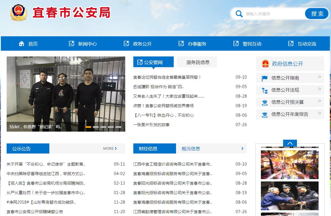 宜春市公安局为宜春市人民政府主管全市公安工作的组成部门。其主要职责是:(一)贯彻执行国家的法律、法规和公安工作的路线、方针、政策;研究拟订全市公安工作的规定和实施办法;对全市公安机关实施组织领导和指挥;负责对全市公安工作的部署、指导、监督和检查。(二)掌握影响社会稳定、危害国内安全和社会治安的情况,分析形势,制定对策。(三)组织实施并指导全市公安机关侦查工作,组织、协调处置重大案件、治安事件、治安事故和重大群体性事件、骚乱。(四)组织实施并指导全市公安机关依法查处危害社会治安秩序行为;依法管理户籍和门楼牌、流动人口、居民身份证、危险物品和特种行业等工作。(五)指导、监督全市公安机关对国家机关、社会团体、企事业单位和重点建设工程的治安保卫工作以及群众性治安组织的治安防范工作;指导机关、团体、企事业单位保卫组织和经济民警、保安队伍的建设。(六)组织指导出入境和外国人在我市境内居留、旅行的有关管理工作,组织指导全市公安外事工作。(七)组织实施并指导、监督全市消防和警卫工作;对武警部队执行公安任务及相关业务建设实施领导和指挥。(八)组织实施并指导全市公安机关维护道路交通安全、交通秩序以及机动车辆、驾驶人管理工作。(九)组织实施并指导、监督全市公共信息网络的安全监察工作。(十)指导、监督全市公安机关依法承担的执行刑罚工作,组织实施并指导、监督全市看守所、治安拘留所、强制隔离戒毒所等的管理工作,规划和指导全市监所建设。(十一)组织实施并指导全市公安法制建设;指导、检查、监督全市公安机关执法活动。(十二)组织实施并指导全市公安机关开展禁毒和缉毒工作,承担市禁毒委员会办公室的日常工作。(十三)组织协调处置恐怖事件、突发性群体事件和重大安全事故,以及承办市反恐怖协调领导小组办公室和市处置突发性事件领导小组办公室的日常工作。(十四)组织实施全市公安科学技术工作,规划全市公安指挥系统、信息技术、刑事技术和技术侦察建设。(十五)拟定并组织落实全市公安机关装备、被装配备和经费等警务保障标准、制度。(十六)指导全市公安政治工作和队伍建设;组织实施并指导、管理全市公安宣传、教育、训练工作;按规定权限管理干部人事工作。(十七)制定全市公安队伍监督管理工作规章制度、分析队伍状况;组织实施并指导全市公安机关督察工作,按规定权限实施对干部的监督,查处或督办公安队伍重大和较大违纪案件;指导全市公安队伍思想作风、工作作风建设。(十八)承办市人民政府交办的其他事项。