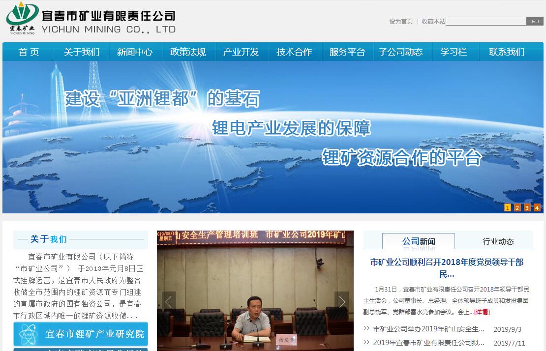 宜春市矿业有限公司(以下简称“市矿业公司”) 于2013年元月8日正式挂牌运营,是宜春市人民政府为整合收储全市范围内的锂矿资源而专门组建的直属市政府的国有独资公司,是宜春市行政区域内唯一的锂矿资源收储经营企业。公司按照“统一政策、统一管理、统一开发、统一经营”原则收储经营管理开发锂矿资源,以确保全市锂电产业长期有效的锂资源供应保障。市矿业公司实行董事会领导下的总经理负责制,高管团队都是从市直相关部门选派熟悉政策法规、懂经营善管理、具有较强组织协调能力的人员组成。公司注册资本金5500万元人民币,分别在袁州区、宜丰县、奉新县、高安市组建了四个独立法人的全资子公司,负责各自行政区内锂矿资源收储、经营、管理;目前公司已经成功收购、控制了氧化锂含量(Li2O)0.4%以上的锂矿山18个:宜丰县花桥乡白水洞高岭土矿、奉新县郭家含锂瓷石矿、奉新县塘下含锂瓷石矿、奉新县富华瓷石矿、高安市伍桥瓷石矿、高安市联合丁家瓷石矿、高安市华峰瓷土矿、高安市高华瓷土矿、奉新县上富镇金峰硅矿厂、奉新县上富镇金港钾长石矿、奉新县联盟陶瓷土矿、宜丰县花桥乡大港瓷土矿、宜丰县第一瓷矿、宜丰县同安乡同安瓷矿、宜丰县同安乡党田瓷矿、宜丰县同安乡鹅颈瓷矿、宜丰县同安乡东槽瓷土矿、宜丰县同安乡东槽鼎兴瓷土矿。为了加快推进锂矿资源的整合收储,并推动锂矿资源的精深加工,市矿业公司与其他投资机构和民间资本合资组建了七个子公司,并开展了相关工程项目的实施:①与湖南锂新科技有限公司和中大高科技孵化器有限公司等投资人在宜丰县花桥乡合资兴建选矿企业——江西旭锂矿业有限公司,年处理300万吨锂矿石选矿和3万吨碳酸锂生产项目,目前,第一期选矿生产线于2015年7月投产,第一期碳酸锂项目今年9月初正式投产;②与旭锂矿业合资成立了宜丰县花锂矿业开发有限公司,共同开发宜丰县花桥乡含锂高岭土矿;③联合中南大学等高等学府研究机构在宜春经济技术开发区合资合作组建了宜春市锂矿产业研究院有限公司,研究院所属宜春市矿产品应用分析检测有限公司于2014年11月底取得了CMA(中国计量认证)资质证书。④与宜丰县同安矿产品开发有限公司合资组建了江西鼎兴矿业有限公司,共同收购、开发宜丰县同安乡境内的所有含锂瓷土、瓷石矿;⑤与宜丰县花桥乡大港瓷土矿合资组建了江西春友锂业有限公司,开展锂矿石开采和选矿一体化的生产经营。⑥与奉新县金峰硅矿厂合资组建了金子峰矿业有限公司,对金峰硅矿的含锂矿石进行开采和选矿一体化的生产经营。⑦与奉新县金港钾长石矿合资组建了江西金顺矿业有限公司,对奉新县金港钾长石矿的含锂矿石进行开采和选矿一体化的生产经营。