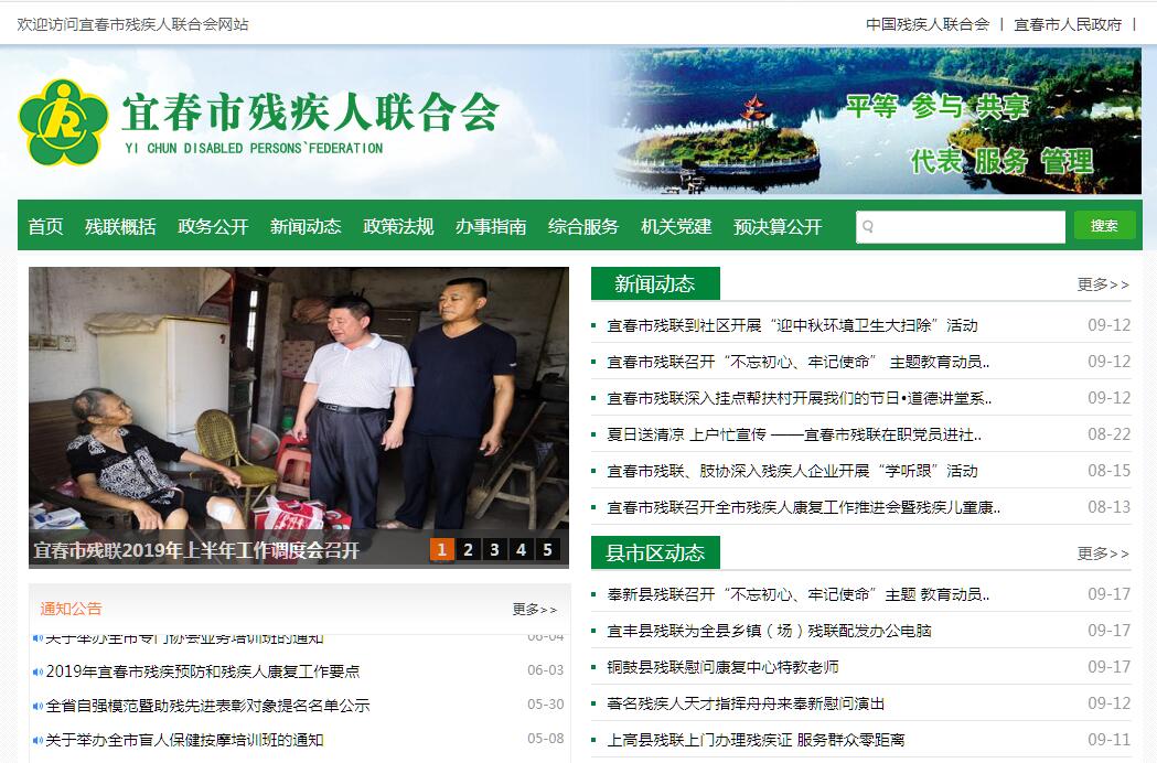 宜春市残联于1989年经市政府批准成立,成立时为正县级单位。残联章程规定,残联组织的职能有三项,即“代表、服务、管 理”,《中华人民共和国残疾人保障法》和《江西省实施〈中华人民共和国残疾人保障法〉办法》规定:各级残疾人联合会受同级人民政府委托,开展残疾人的康 复、教育、就业、维权、文体等工作。市残联机关共设4个处室,即秘书科、康复科、教就科、信访维权科,另有一个事业单位,残疾人劳动就业服务中心(残疾人辅助器具服务中心)。机关总编制8名,其中事业编制7名,工勤编1名。主要职责:(一)密切联系残疾人,听取残疾人意见,反映残疾人需求,全心全意为残疾人服务。(二)团结、教育残疾人,遵守法律,改造应尽义务,发扬乐观进取精神,自尊、自信、自强、自立,为现代化建设贡献力量。(三)沟通政府、社会与残疾人之间的联系,宣传残疾人事业,动员社会理解、尊重、关心、帮助残疾人。(四)开展和促进残疾人康复、教育、劳动就业、文化生活、福利、社会服务和残疾预防工作;改善残疾人参与社会生活的环境和条件。(五)协助政府研究、制定和实施残疾人事业的法规、政策、规划和计划;发挥综合协调、咨询、服务作用,对有关领域的工作进行管理和指导。(六)承担政府残疾人工作协调委员会的日常工作。(七)管理和发放《中华人民共和国残疾人证》。(八)联系、指导残疾人群众组织,培训残疾人工作者。