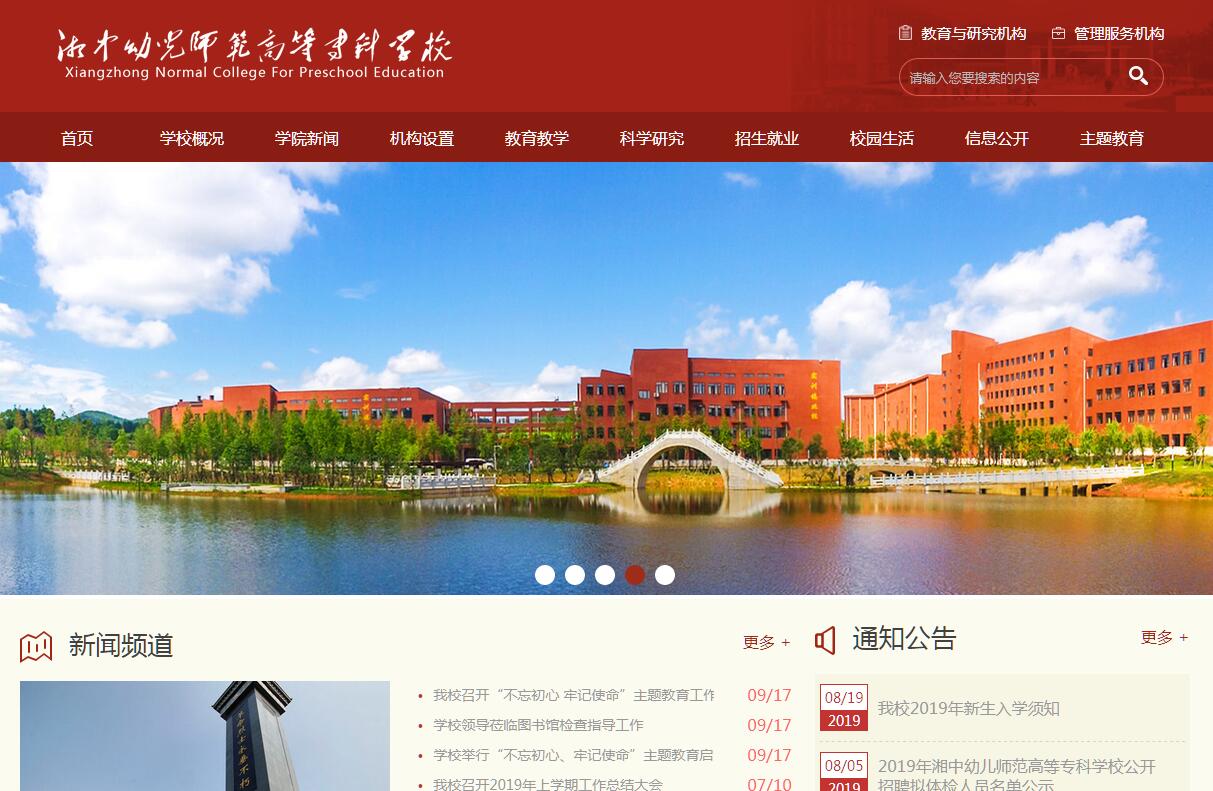 湘中幼儿师范高等专科学校成立于2017年3月,是由湖南省人民政府批准、国家教育部备案、省市共管的全日制普通高等专科院校。学校由邵阳师范、武冈师范、邵阳教育学院、邵阳艺术学校四校合并升格而成,其中邵阳师范、武冈师范均为百年师范名校,办学传统优良,文化底蕴深厚,均为“国家级重点中等职业学校”。20世纪80年代,两校先后开办学前教育专业,经过30余年的求真探索,专业不断发展壮大,生源稳定充足,毕业学生供不应求,就业率高。合并后的湘中幼儿师范高等学校正乘着国家大力发展学前教育、基础教育的浩荡春风,后发赶超,短短两年已建成为教学优良、管理先进、科研进步、专业合理、环境优雅、综治先进的文明校园。学校位于邵阳市职教新城(大祥区学院路),建设面积671亩,校园内绿树红墙,交相辉映,书声琅琅,琴韵悠扬,更有青山翠绕,池鱼戏莲,湖光山色,如诗如画,为莘莘学子求学的理想学堂;教学仪器设备总值1.6亿元,馆藏图书近70万余册,专业实训室及专用教室100余间,拥有一流的多媒体、语音、科学等现代化教学设施;学校师资力量雄厚,现有教职员工493人,副高以上专业技术职务教师136人,具有硕士学位教师107人,双师型教师89人,省市级学科带头人10余人;现有学前教育系、小学教育系、语言文学系、艺术系、基础教育系、职成教系、教师发展中心等六系部一中心;开设有学前教育、小学教育、语文教育、数学教育、英语教育、美术教育、音乐教育、早教教育、视觉传播设计与制作、戏曲表演、文秘等多个专业,其中“小学教师培养与发展专业群”已获批湖南省高职教育一流特色专业群培育项目;有三年制高招大专、五年制初招公费大专两种学制,面向湖南各地州市及周边省市招生,现有在籍学生8000余人。修德敬业,博学多能,厚生立学,厚德树人。学校将坚持“人才强校”的办学理念,大力引进高水平的专业人才;加快专业建设步伐,在原有专业基础上,增设体育教育、舞蹈教育、计算机应用技术、现代教育技术、室内装修设计等多个专业,以培养专科层次小学和幼儿园教师为己任,立足湘中、面向全省、辐射全国,力争建成全省一流、全国有名的幼儿师范高等专科学校。