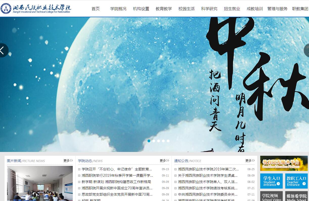 湘西民族职业技术学院是2004年5月经湖南省人民政府批准,教育部备案的湘西自治州唯一一所普通高等职业技术院校。学院坐落于湘西经济开发区内,所处的湘西自治州位于湘、鄂、渝、黔四省市边区中心腹地,是一个土家族、苗族聚居的少数民族地区、革命老区。长期以来,学院坚持“以服务为宗旨,以就业为导向,以能力为本位,以特色立品牌,以创新求发展”的办学理念,推行职业教育资源整合,服务区域经济发展,着力提高人才培养质量和水平,呈现出良好的发展态势。办学条件优越 校园占地面积1100余亩,建筑面积24万余平方米,其中,教学科研实训区10万㎡,学生生活服务区8万㎡,文化体育功能区近6万㎡,绿化面积达560亩。新校区建设基本实现了功能布局合理化、教学设施标准化、教学管理信息化、校园环境生态化。师资队伍优秀 现有教职工699人,正、副教授141人,硕士、博士99人,“双师型”教师比例达72%。其中,100余人获得国家和省级表彰,11人荣获“全国优秀教师”和“湖南省优秀教师”称号,2人被评为“全国职教先进工作者”;近三年,全院教师申报有90余项国家级、省级教研课题,共发表学术论文561篇,获得国家发明专利和实用新型专利29项。教育质量优良 设有10个教学系部,开设有与市场相衔接,涵盖一、二、三产业的高职专业25个,其中,服装设计专业是省级精品专业,旅游管理、电算会计、畜牧兽医专业是省级教改示范专业,汽车检测与维修、数控技术、畜牧兽医、服装设计专业是中央财政支持的职业教育实训基地项目建设专业;会计电算化、汽车检测与维修技术两个专业分别在2010年、2012年湖南省专业技能抽考中,合格率达到了100%,荣获全省第一名;服装设计、旅游、会计电算化、汽车检测与维修、数控技术等专业学生分别在2012年、2013年省级以上职业技能竞赛中获得3个团体二等奖,6个团体三等奖,24人次获个人二、三等奖;在2015年湖南省旅游服务业职业技能竞赛中,旅游管理系师生共荣获6个一等奖、3个二等奖、6个三等奖,学院荣获参赛单位团体一等奖及特别贡献奖。办学成绩优异 学院由8所中职学校合并组成,是一所以高等职业技术教育为主体,兼顾中等职业(中技)技术教育、成人本科与专科教育、各类技能培训的综合性职业技术院校。全日制学生10911人,“一村一名农民大学生”1100余人;常年开展各级各类技能培训,年培训人数2000人次以上;学院在广东、北京、上海、浙江等地建立了125个长期稳定的就业基地,毕业生就业率达90%以上。办学50多年来,学院先后为社会培养了7.5万名各类人才,目前,湘西自治州农、林、牧、商、财、交通、水电系统80%技术骨干系我院毕业生。学院是国务院扶贫办授予的“全国劳动力转移培训十大示范基地”,是农业部授予的“全国开展科技扶贫,直接为地方经济建设服务先进单位”,是教育部、劳动和社会保障部、科技部、团中央等部门授予的“全国农村青年转移就业先进单位”,是国家关工委授予的“全国五好基层关工委先进集体”,是中华职教社授予的“全国温暖工程先进集体”,是湖南省有关部门授予的“湖南省教学工作优秀单位”、“湖南省大中专毕业生就业工作先进单位”、“湖南省德育工作先进单位”、“湖南省学生管理工作先进单位”、“湖南省招生工作先进单位”、“湖南省文明高校”、“湖南省园林式单位”。面对高等职业教育发展的新任务和新机遇,湘西民族职业技术学院将按照“稳定规模、优化结构、突出特色、提高质量”的发展思路,以奋发有为的精神状态,真抓实干的工作作风,为把学院打造成省内一流的美丽现代卓越新职院而不懈努力!