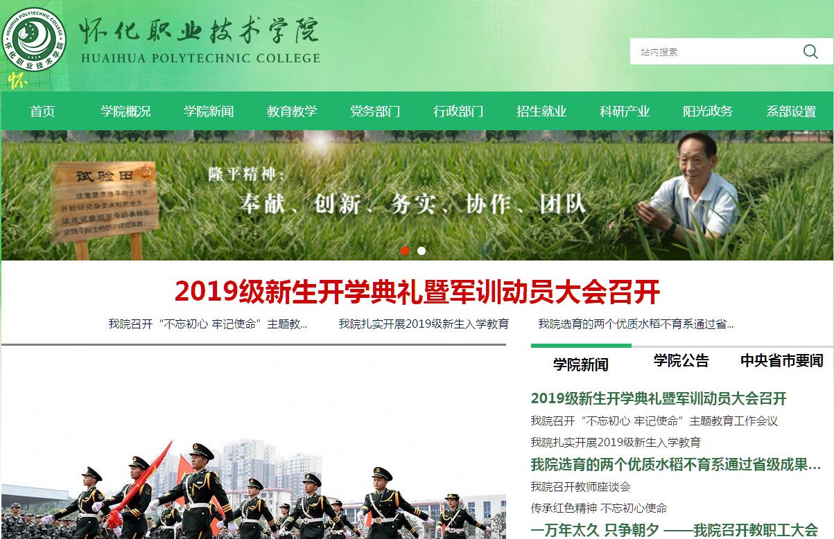 怀化职业技术学院是一所全日制公办普通高等职业院校,学院由湖南省安江农业学校与怀化机电工程学校于2004年合并组建而成,学院办学始于1939年,距今有近80年历史,现实行怀化市人民政府与湖南省农业委员会共建、以市政府为主的管理体制,著名科学家、中国工程院院士袁隆平担任名誉院长。学院是闻名世界的杂交水稻发源地、国家首批特等发明奖获得单位、全国重点文物保护单位、全国科教兴农先进单位、全国科普教育基地、教育部评估优秀高职高专学校、全国五四红旗团委、湖南省示范性(骨干)高职院校、湖南省爱国主义教育基地、全省民族团结进步创建示范单位。学院占地面积900余亩,有怀化和安江两个校区,其中怀化校本部面积435亩,安江校区(全国重点文物保护单位)面积261亩,安江实验山地面积近300亩,共有校园建筑面积20万平方米,固定资产2.3亿元,馆藏图书30万册,教学仪器总值3000多万元。学院现有教职员工420余人,其中有正高职称18人,副高职称87人,设有思想政治理论课部、环境与生物科技、动物科技、机械与汽车工程、电子电气工程、建筑工程、信息与艺术设计、商贸管理、人文科技9个教学系(部),开办26个高职大专专业,面向全国19个省市区招生,学生规模8000余人。建有农业生物技术、畜牧兽医、机械制造、建筑工程、计算机实训、商贸管理等9个实训中心及62个实训室,中央财政支持专业3个(种子生产与经营、畜牧兽医、建筑工程技术),省级示范性特色专业群1个(现代农业技术与服务专业群),省级特色和精品专业1个(种子生产与经营),是中国农业职业教育集团、湖南农业职业教育集团副理事长单位。学院在近80年的办学中,汇聚了袁隆平(著名科学家、中国工程院院士、全国政协第十二届委员会常务委员)、李泽棠(革命家、教育家、生物学家)、罗紫崖(著名水稻育种专家、“万利籼”水稻品种培育者)、李必湖(著名杂交水稻专家、党的十一大、十二大代表、全国劳动模范)等一批名师,培养了以李玉才(棉花育种专家、国家科委发明奖获得者)、向其柏(植物学家、南京林业大学教授、博士生导师)、陈锦屏(食品学家、全国优秀农业科技工作者、陕西师范大学教授、国家首批博士生导师)、邓华凤(杂交水稻专家、全国先进工作者、湖南农业科学院副院长)等为代表的一大批优秀专业技术和管理精英人才,目前,怀化农、林、牧、建筑系统80%技术骨干是我院毕业生。学院科研硕果累累,有8项获国家级奖,24项获省部级奖,其中选育的籼型杂交水稻荣获国家第一个特等发明奖,为解决我国粮食短缺和农民增收作出了重要贡献。选育的安江大红甜橙、安农一号柚、安农蜜香柚、安江早香柚、金秋梨、冰糖橙、安锦一号葛、雪峰乌骨鸡等果树作物新品种和禽畜良种,为武陵山区产业发展和农民脱贫致富作出了积极贡献。学院现有科研平台两个:一是“国家杂交水稻工程研究中心怀化分中心”(湖南安江杂交水稻研究所),中心现有科研人员14名,并拥有海南三亚水稻育种基地;二是“怀化市武陵山区优质水果种质资源库及核心母本采穗圃”,资源库位于安江校区,占地面积100余亩,有柑橘、猕猴桃、葡萄、杨梅、枇杷等20余个种类,220个优良品种。未来五到十年的时间里,学院将紧紧围绕市委、市政府“一极两带”和“一个中心、四个怀化”发展战略,全面贯彻党的教育方针,坚持“依托产业办专业、办好专业兴产业、兴旺产业促就业”的办学宗旨,坚持改革创新、从严治校、内涵发展,全面提升办学水平,把学院建设成为“全国一流农业类高职院校、武陵山片区职业技术教育核心基地、怀化区域经济发展的重要科技与人才支撑”。