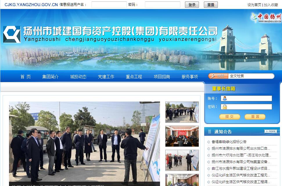 扬州市城建国有资产控股(集团)有限责任公司(以下简称城控集团)于2000年6月由扬州市人民政府作为国有资产出资人,经江苏省人民政府批准成立。【经营范围】市政府授权范围内的国有资产经营(公用事业资产、酒店、交通运输、港口、教育资产等)及经批准的其他业务;房地产开发、保障性住房建设、国内贸易(国家有专项规定的除外),房屋租赁、市政设施投资建设。(依法须经批准的项目,经相关部门批准后方可开展经营活动)目前,城控集团内设办公室、党群工作部(纪检监察室)、计划财务部、投资发展部、企业管理部、资产管理部五部一室;集团拥有扬州公用水务集团有限公司、江苏长江水务股份有限公司、扬州市洁源排水有限公司、扬州市城建置业有限公司、扬州万福投资发展有限公司、扬州三湾投资发展有限公司、扬州中燃城市燃气发展有限公司、扬州威亨热电有限公司、扬州市民卡有限公司等26家全资、控股及参股公司,形成了以水务(自来水供应、安装工程、污水处理)、燃气(燃气供应、安装工程)、供热等城建公用事业,土地房地产开发、房产租赁等板块为经营主业,同时涵盖城市基础设施建设、市民卡服务、金融投资等多个领域的业务运营体系。集团注册资本70亿元,外部主体信用等级AA+。近年来,城控集团在扬州市委、市政府的正确领导下,紧紧围绕“三个扬州”和“世界名城”建设目标,迎难而上,务实奋进,在建设城市、服务城市发展中发挥了重要作用,相继实施了一批有影响的重点城建项目。如:新万福路工程、三湾湿地保护与开发利用工程、古运河大王庙以东段综合整治工程、污泥处置与资源化利用一期工程、京杭融园、国泰大厦、通运商贸城、工艺坊,等等。同时,还围绕民生工作,加大公用基础设施投入,相继实施了一批民生项目。如:“川气东送”进扬工程、“气化乡镇”工程、第一水厂提标扩建工程、头桥水厂二期工程、廖家沟取水口迁建工程、六圩污水处理厂三期工程、威亨热源替代工程,等等。城控集团还坚持做好优质服务工作,结合文明城市创建活动,开展了“百名党员进千户,联系群众送服务”、“精致服务年”、“精致服务提升年”、“送服务进社区(乡镇)”等活动;打造了自来水“小李服务队”、燃气“蓝焰服务队”等具有一定知名度的服务品牌;初步建成了主城区“15分钟快速服务圈”。企业的社会满意度不断提高,社会形象不断提升,2012年、2013年、2014年连续三年被市委、市政府表彰为“目标管理作风建设先进单位”,2015年被市委、市政府表彰为“2500周年城庆重大城建项目建设先进单位”。