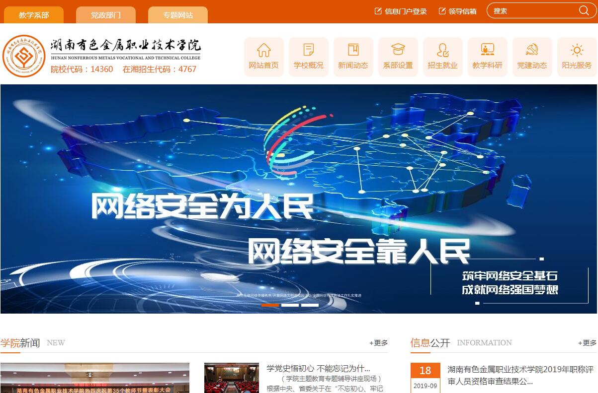 湖南有色金属职业技术学院(以下简称有色职院)是经湖南省人民政府批准、教育部备案、湖南省有色金属管理局主管的全日制普通高等学校和省财政全额拨款的事业单位,是全国有色金属行业第一所政府公办高职院校和“中国有色金属工业高技能人才培养基地”,是中国有色金属工业协会与湖南省人民政府共建的高等院校。2012年被中华全国总工会确定为“全国职工职业技能实训基地”。2014年被评定为省文明高校。有色职院新校区距黄花机场20公里,京珠、长株、上瑞3条高速公路和长株潭城际轻轨在附近交汇,区域优势明显,交通十分便捷。学院占地600余亩,高起点规划,高标准建设。一期按照8000人在校生规模建设。总投资6亿元,总建筑面积16万平方米,所有的校园校舍全部新建,校园绿树成荫,环境十分优美。学院按“行业需要,市场需求”的原则设置专业20余个,设有资源环境系、冶金材料系、机电工程系、建工管理系、基础课部、继续教育部和国家职业技能鉴定站。开设的金属矿开采、地质、测量、选矿、冶金、金属材料与热处理等专业,在全国高职院校中独树一帜;是全国首个开设稀土工程技术的高职院校。2013年10月,学院牵头组建了湖南省首个区域性职教集团—中南有色金属职业教育集团,集结了职业院校、科研院所和全国知名企业100余家作为校企合作单位,开展了职业教育集团化办学方向,强化了职业教育与市场人才需求的对接,辐射湘、鄂、桂、赣、黔、新等18个省市、自治区。目前,学院有在校学生6000余人,教职工300多名,已经与湖南有色金属控股集团等200多家省内外企事业单位签订了《校企合作协议》和《高技能人才委托培养意向书》,在株洲冶炼集团等大型企业建立了60多个实习实训基地。近几年毕业生就业率均达到98%以上,被评为省招生就业工作先进高校。学院积极实施走出去战略,已与省内4所本科院校进行了“专升本无缝对接”,与德国和韩国相关大学和企业建立了合作关系。2013年,学院部门毕业生分别进入省内本科院校和德国北黑森应用科技大学、韩国韩南大学继续深造,为学生提供了良好的发展平台。