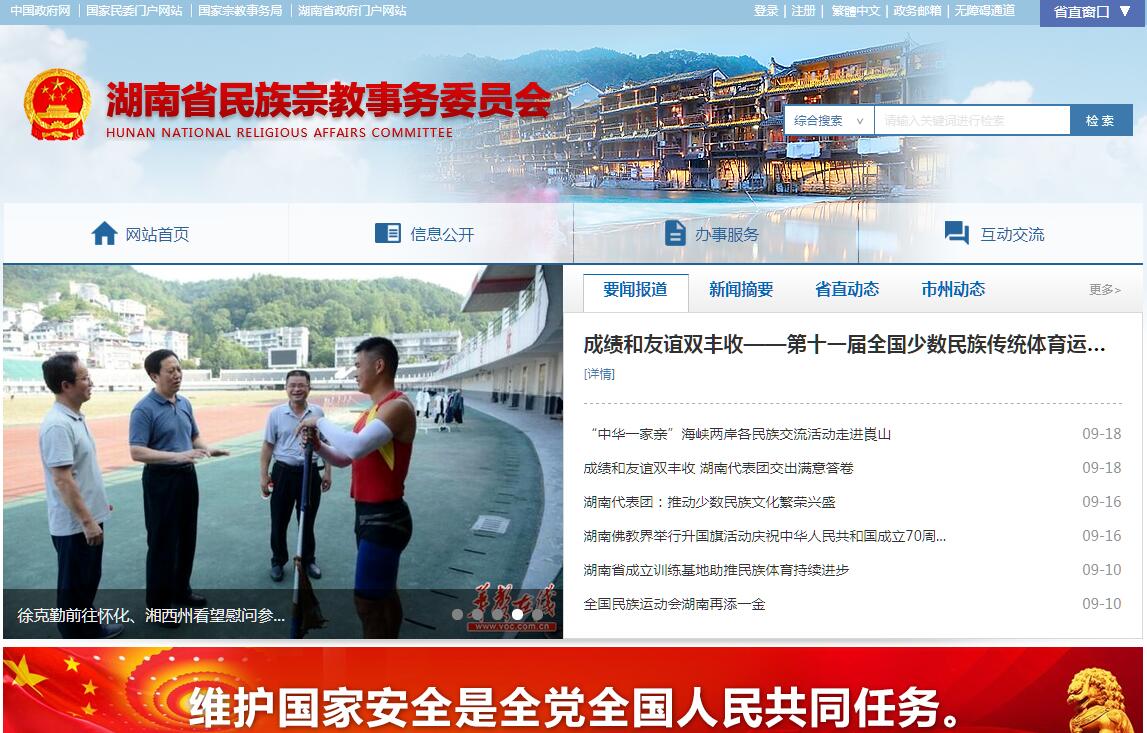 湖南省民族宗教事务委员会主要职责:(一)贯彻执行党和国家关于民族宗教工作的方针、政策、法律、法规以及省委、省政府的决策部署;负责起草民族宗教地方性法规、规章草案,协调推进本系统依法行政,落实行政执法责任制;保障少数民族合法权益,联系民族自治地方,督促指导民族区域自治法和宗教事务条例的贯彻落实。(二)组织开展民族宗教理论、政策及重大问题的调查研究;负责民族宗教动态和信息的汇总、分析,提出有关民族宗教工作的政策建议。(三)负责协调推动有关部门履行民族宗教工作相关职责,促进民族宗教政策的实施、衔接;对全省民族宗教工作进行业务指导。(四)研究提出协调民族关系、宗教关系的工作建议,会同有关部门处理涉及民族关系、宗教关系的重大事项,参与协调民族地区社会稳定工作,促进各民族共同团结奋斗、共同繁荣发展,维护国家统一。(五)负责拟订全省少数民族事业发展专项规划,监督检查规划实施情况;参与拟订少数民族和民族地区经济社会相关领域的发展规划,促进建立和完善少数民族事业发展综合评价监测体系,推进民族宗教事务服务体系和管理信息化建设。(六)研究分析全省少数民族和民族地区经济发展、社会事业方面的问题并提出特殊支持的政策建议,组织协调或参与配合实施省委、省政府部署的民族地区民生工程相关工作,参与协调民族地区教育科技发展、对口支援、经济技术合作、扶贫开发、民族贸易、民族特需用品生产等相关工作。(七)负责组织指导全省民族宗教方面的法律法规、政策及基本知识的宣传教育工作;组织开展民族团结进步的创建活动;承办省政府民族团结进步表彰活动;指导城市民族工作,协调城市民族关系;指导散居少数民族和民族乡工作;组织协调民族自治地方重大庆典活动。(八)负责管理全省少数民族语言文字工作,指导少数民族语言文字的翻译、出版和民族古籍的收集、整理、出版工作。(九)依法履行宗教事务管理职责,依法保护公民宗教信仰自由和正常的宗教活动,维护宗教界合法权益,促进宗教关系和谐。(十)指导宗教团体依法依章开展活动,支持宗教团体加强自身建设,帮助宗教团体办好宗教院校,推动宗教团体在宗教界开展爱国主义、社会主义和维护祖国统一、民族团结的自我教育,办理宗教团体需由政府解决或协调的有关事务。(十一)指导市、县民族宗教事务部门依法履行管理职责,防范利用民族宗教进行的非法、违法活动,抵御境外利用民族宗教进行的分裂、渗透、破坏活动。配合有关部门做好防范和处理邪教问题。(十二)负责民族宗教事务方面的外事管理工作,组织指导民族宗教工作领域有关对外和对港澳台的交流、交往与合作;与涉及民族宗教事务的对外宣传工作。(十三)参与拟订少数民族干部人才队伍、宗教工作队伍建设规划,研究提出少数民族和民族地区干部队伍建设的政策建议,联系少数民族干部和宗教界代表人士,会同有关部门开展少数民族和民族地区干部的培养教育和使用工作,协助有关部门开展全省性宗教团体换届工作和宗教界人士的推荐安排工作。(十四)承办省委、省政府交办的其他事项。
