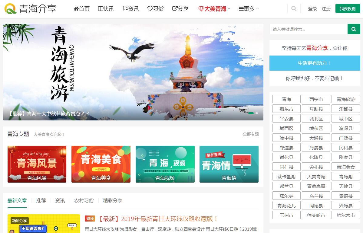 | 网站简介: 青海分享--青海人的网上家园,让您时时刻刻了解青海资讯、农村习俗、青海花儿、青海西宁旅游攻略等,和数万青海人一起来看美景、品美食、听花儿吧! |