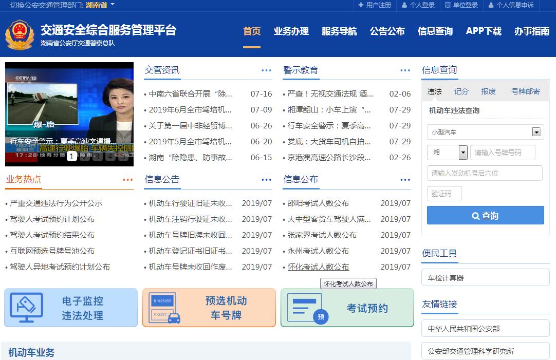 湖南省交通安全综合服务平台由湖南省公安厅交通警察总队主办。