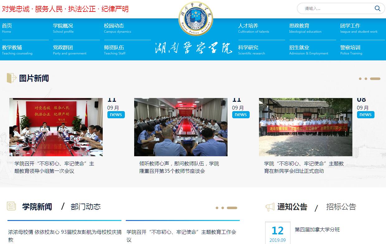 湖南警察学院是全省唯一一所培养警务人才的全日制普通高等本科院校,由湖南省人民政府举办,湖南省公安厅主管,湖南省教育厅负责业务管理。学校前身最早为成立于1949年的湖南临时省政府公安厅公安学校。学校大力发展公安教育事业,立足湖南,面向公安,为公安事业及社会经济发展培养高素质应用型专门人才。办学70年来,学校秉承“忠真智勇”的校训,为公安政法战线培养了4万多名合格人才,被誉为“三湘警察的摇篮”。学校地处长沙市星沙经济技术开发区,占地面积700余亩,校舍建筑面积24.17万平方米,教学科研仪器设备总值7357万元,图书馆纸质藏书84.9万册。学校教学设施完备,拥有刑事科学技术实验室、网络犯罪侦查实验室、射击馆、警务实战训练基地、心理行为训练基地等校内实验实训场所80个,其中有湖南省重点实验室和湖南省高校重点实验室各1个、省级基础课实验教学示范实验室1个。学校与各市州公安局和相关企业共建校外教学实习基地62个。建有省级优秀实习基地8个,省大学生创新训练中心2个、省校企合作人才培养示范基地2个。学校坚持以教学为中心。根据公安工作与经济社会发展需要,开设侦查学、治安学、刑事科学技术、禁毒学、警务指挥与战术、交通管理工程、网络安全与执法等7个公安类本科专业和信息安全、法学、行政管理学、计算机科学与技术、应用心理学等5个普通类本科专业。现有在校学生近7000人。建有湖南省重点建设学科1个,湖南省双一流应用特色学科1个,公安部重点建设专业1个,省级特色专业2个,省级综合改革试点专业3个;国家级精品课程5门、省部级精品课程12门。学校坚持以教师为主体,大力加强师资队伍建设。现有专任教师361人,其中正高职称教师48人,副高职称教师138人,博士和硕士学位教师241人。教师中有全国模范教师1人,全国公安系统优秀教师11人,湖南省新世纪“121人才工程”入选者5人,省部级教学名师3人,省级优秀教师2人,省级优秀教育工作者1人,省级教学奉献奖获得者1人,省级学科带头人1人,省级青年骨干教师32人,省级青年教学能手8人,省级优秀人民警察7人,省级优秀教学团队1个。4名教师入选联合国维和警察,参与联合国维和11次。学校坚持教学、科研、实战相结合,形成了教学科研相长的良好局面。建有省级社科研究基地1个、省级教科研究基地1个。近年来获得省级以上科研立项200余项。其中,国家级基金项目5项,教育部公安部项目20余项,省自科、社科基金项目53项,省科技厅项目48项,省教科规划项目25项。获得国家专利10余项,省级科技奖5项,省部教学成果奖8项,出版学术专著30多部。学校坚持公安学历教育与在职民警培训协调发展,是公安部警务实战训练基地、公安部外警培训基地和湖南省警官培训中心。近三年来,学校共承办全省派出所长大轮训等各类培训班200余期,培训学员30000余人,出色地完成了公安部多期警务实战教官调训,承办了香港警队国情教育培训班、印度尼西亚、泰国、老挝、柬埔寨、坦桑尼亚、刚果(布)等国警察培训班,得到了公安部的充分肯定。学校坚持以育人为根本。坚持政治建校,政治育警,致力于培养政治可靠、专业过硬、作风优良、纪律严明、身心健康,具有较强实践能力和创新精神的应用型高级警务专门人才和适应经济社会发展需要的其他专门人才。在长期的办学中形成了“教、学、练、战一体化”的人才培养模式,逐步凝练了“政治首位、注重养成、贴近实战、服务公安”的办学特色。学校对学生实行警务化管理。设有各类奖学金、助学金和勤工助学岗位,资助家庭困难学生完成学业。学校注重环境育人,校园文化活动丰富多彩。学校坚持开放办学,多层次、多举措推进校局、校企、校校合作及国际合作交流。与全省各市州县区19个公安局建立了深度校局合作关系,与北京、江西、新疆等省(市、自治区)警察学院开展友好合作办学,与英国、加拿大等国警察、司法院校建立了长期合作关系,每年选派若干骨干教师、选拔优秀学生赴加拿大哥伦比亚司法学院和英国伦敦警务学院进行访学和研学活动。学校坚持转型发展、内涵发展、特色发展,取得了丰硕的办学成果。学校先后被评为全省文明高校、省直机关文明标兵单位、全省高校毕业生就业工作一把手工程优秀单位、党风廉政建设考核优秀单位、社会治安综合治理工作先进单位、心理健康教育先进单位、招生工作先进单位、思政教育研究先进单位、辅导员工作研究与实践先进单位。学生参加全国和省级各类比赛成绩优异,先后获得全国公安院校教学技能大赛团体一等奖、“美亚杯”全国电子数据取证大赛一等奖、“创青春”全国大学生创业大赛银奖、第四届大学生艺术展演获全国二等奖、全省一等奖、湖南省移动互联网大学生创新创业大赛一等奖等奖项100余项。