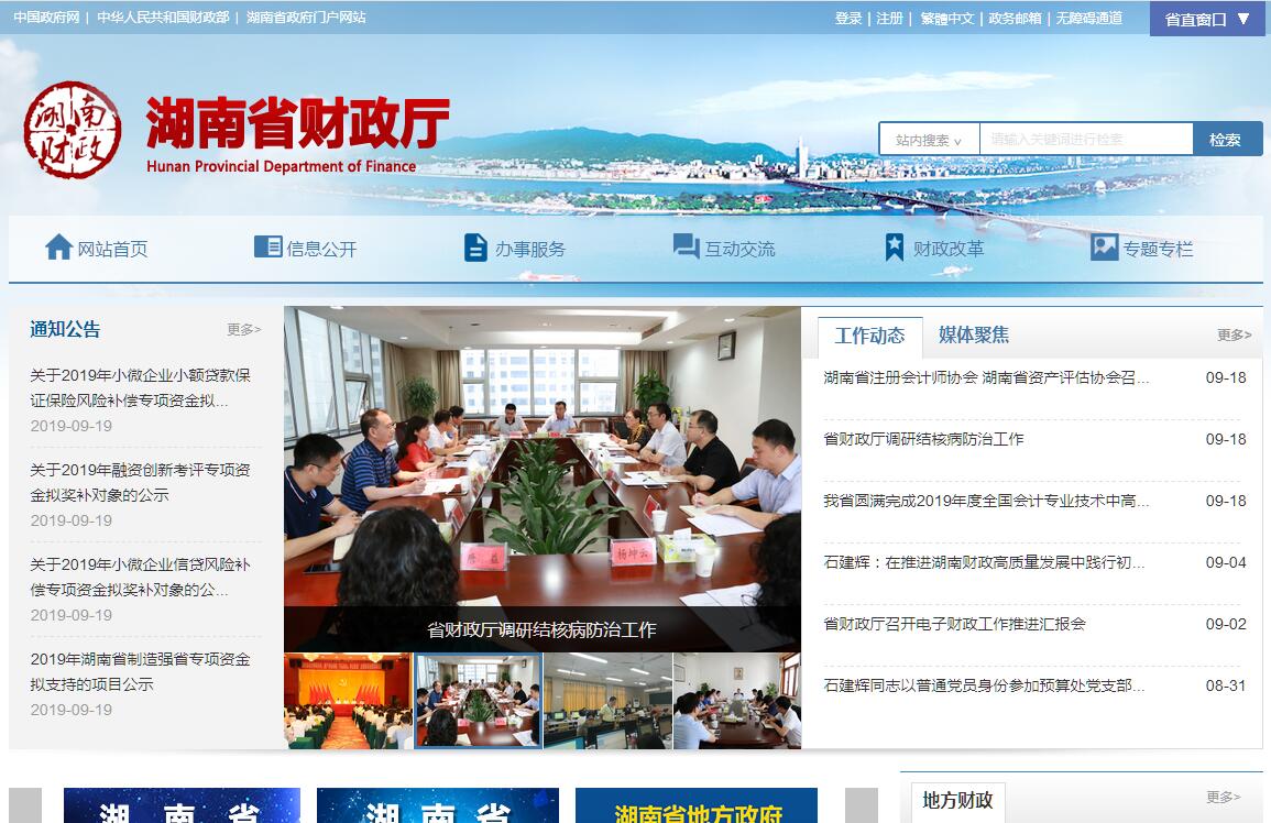 湖南省财政厅主要职责为:(一) 组织贯彻执行国家财税方针政策,拟订和执行全省财政政策、改革方案,指导全省财政工作;分析预测宏观经济形势,参与制定各项宏观经济政策;提出运用财税政策实施宏观调控和综合平衡社会财力的建议;拟订和执行省与市州、县市,政府与企业的分配政策,完善鼓励公益事业发展的财税政策。(二) 起草财政、财务、会计管理的地方性法规、规章草案,制定和执行财政、财务、会计管理的制度及办法,参与涉外财政、债务等的国际谈判并签订有关协议、协定。(三) 承担省本级各项财政收支管理的责任。负责编制年度省本级预决算草案并组织执行。代编全省财政收支预算,汇总全省财政总决算;受省人民政府委托,向省人民代表大会报告省本级、全省预算及其执行情况,向省人大常委会报告决算。组织制订省本级经费开支标准、定额,负责审核批复部门(单位)的年度预决算。完善转移支付制度,推进省直管县财政体制改革。(四) 负责政府非税收入管理,负责政府性基金管理,按规定管理行政事业性收费。管理财政票据。(五) 组织制定国库管理制度、国库集中收付制度,指导和监督省本级国库业务,按规定开展国库现金管理工作。负责制定政府采购制度并监督管理。(六) 贯彻执行国家税收法律、行政法规和税收调整政策,反馈政策执行情况,提出调整建议。研究制定省管理权限内有关税收政策及税收政策调整方案并组织实施,按照规定权限,审批或报请省人民政府审批地方税收的减免工作。负责契税、耕地占用税的征收管理,按规定承担地方关税管理的有关工作。(七) 负责制定全省行政事业单位国有资产管理规章制度,会同有关部门管理省本级行政事业单位国有资产,制定需要全省统一规定的开支标准和支出政策,负责财政预算内行政、事业单位和社会团体的非贸易外汇管理。(八) 负责审核和汇总编制全省国有资本经营预决算草案,制定国有资本经营预算的制度和办法,收取省本级企业国有资本收益,组织实施企业财务制度,参与拟订企业国有资产管理相关制度,负责省级国有宣传文化、金融类企业的国有资产管理,按规定管理资产评估工作。(九) 负责办理和监督省财政的经济发展支出、省级政府性投资项目的财政拨款,参与拟订省建设投资的有关政策,组织实施基本建设财务制度,负责有关政策性补贴和专项储备资金财政管理工作。负责农业综合开发管理工作。(十) 会同有关部门管理省财政社会保障和就业及医疗卫生支出,组织实施社会保障资金(基金)的财务管理制度,编制省社会保障预决算草案。(十一) 贯彻执行政府内外债务管理的政策、制度和办法,防范财政风险。负责统一管理省政府外债,制定基本管理制度。按规定管理外国政府和国际金融组织贷(赠)款。承担财税领域交流与合作的具体工作。(十二) 负责管理全省的会计工作,监督和规范会计行为,组织实施国家统一的会计制度,拟订并组织实施全省会计行政法规规章,指导和监督注册会计师和会计师事务所的业务,指导和管理社会审计。(十三) 监督检查财税法规、政策的执行情况,反映财政收支管理中的重大问题,提出加强财政管理的政策和建议。(十四) 承办省人民政府交办的其他事项。