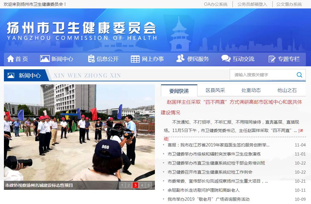 扬州市卫生健康委员会主要职责:(一)贯彻执行国家和省有关卫生和计划生育、中医药工作的法律法规和方针政策,组织拟订全市卫生和计划生育发展规划及年度计划,并组织实施及检查督促。统筹规划全市卫生和计划生育服务资源配置,指导全市卫生和计划生育规划的编制与实施。(二)组织指导全市医药卫生体制改革,组织推进基本药物制度和公立医院改革,建立公益性为导向的绩效考核和评价运行机制,建设和谐医患关系。组织拟订并实施基层卫生和计划生育服务、妇幼卫生发展规划和政策措施,指导全市基层卫生和计划生育、妇幼卫生服务体系建设,推进基本公共卫生服务均等化,完善基层运行新机制和乡村医生管理制度。负责新型农村合作医疗的综合管理。(三)负责制定全市疾病预防控制规划、免疫规划、严重危害人民健康的公共卫生问题的干预措施并组织实施,制定全市卫生应急和紧急医学救援预案、突发公共卫生事件监测和风险评估计划,组织指导全市突发公共卫生事件预防控制和各类突发公共事件的医疗卫生救援处置。(四)组织实施卫生行政执法工作,按照职责分工,负责职业卫生、妇幼卫生、放射卫生、环境卫生和学校卫生的监督管理,负责公共场所和饮用水卫生安全监督管理,负责传染病防治监督与管理工作,组织指导消毒杀虫、除害灭病工作。负责食品安全风险监测与评估等工作。(五)负责卫生和计划生育宣传、健康教育、健康促进和信息化建设等工作,依法组织实施统计调查,参与全市人口基础信息库建设。负责系统外事管理,对外技术交流与合作和援外、援疆等工作。(六)负责医疗机构医疗服务的全行业监督管理,组织实施国家和省关于医疗机构及医务人员执业标准、医疗服务、医疗技术、医疗质量、采供血等管理规范,并组织督促检查和评估。负责管理全市医疗救护工作。建立医疗机构医疗服务评价和监督体系。制定和实施医疗卫生职业道德规范和制度,开展职业道德教育。(七)贯彻中西医并重的方针,制定实施全市中医药事业发展规划,负责指导和管理全市中医药、中西医结合工作,推进中医药传承、创新与发展。(八)制定全市重点医学科技发展规划,组织重点医药卫生科研攻关及成果鉴定和推广。指导重点学科、重点专科建设。(九)贯彻落实国家生育政策,完善地方生育政策措施,组织实施促进出生人口性别平衡的政策措施,组织监测计划生育发展动态,提出发布计划生育安全预警预报信息建议。制定优生优育、提高出生人口素质和计划生育技术服务的政策措施并组织实施,推动实施计划生育生殖健康促进计划,降低出生缺陷人口数量。(十)组织建立计划生育利益导向、计划生育特殊困难家庭扶助和促进计划生育家庭发展等机制。负责协调推进有关部门、群众团体履行计划生育工作相关职责,建立与经济社会发展政策的衔接机制,提出稳定低生育水平政策措施。(十一)制定流动人口计划生育服务管理制度并组织落实,推动建立流动人口卫生和计划生育信息共享与公共服务工作机制。(十二)拟订全市卫生和计划生育科技发展规划,组织实施卫生和计划生育相关科研项目。(十三)指导全市计划生育工作,完善综合监督执法体系,规范执法行为,监督检查法律法规和政策措施的落实,组织查处重大违法行为。监督落实计划生育一票否决制。(十四)拟订全市卫生和计划生育人才发展规划,指导卫生和计划生育人才队伍建设。加强高层次人才、全科医生等急需紧缺专业人才培养,建立完善住院医师和专科医师规范化培训制度并组织实施,组织实施毕业后继续医学教育。(十五)编制卫生和计划生育事业经费预算、决算,提出医疗卫生和计划生育服务价格建议,负责卫生计生统计信息的管理,审核医疗卫生和计划生育机构的基本建设计划,协同有关部门监督管理医疗卫生和计划生育服务收费,承担卫生计生财务审计工作。(十六)承担市人口和计划生育领导小组、市爱国卫生运动委员会、市政府血吸虫病地方病防治领导小组和市艾滋病防治工作委员会的日常工作。(十七)负责市干部保健委员会确定的保健对象医疗保健服务工作,承担重要会议与重大活动的医疗保障工作。(十八)承办市政府交办的其他事项。