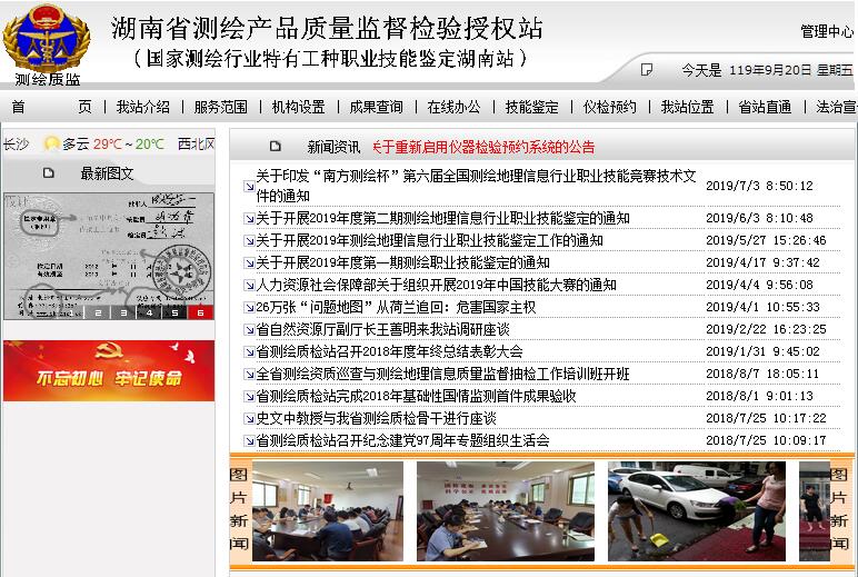湖南省测绘产品质量监督检验授权站,又称国家测绘行业特有工种职业技能鉴定湖南站,是隶属湖南省国土资源厅的公共监督检验事业单位,是经湖南省质量技术监督局、湖南省国土资源厅考核、认证、授权的测绘产品质量监督检验和测绘仪器计量检定机构,是湖南省测绘产品质量监督检验机构,是国家测绘局认定的测绘行业特有工种职业技能鉴定站(编码:68003012)。通过中国合格评定国家认可委员会(CNAS)检测和校准实验室能力认可(注册号:CNAS L4881)。我站拥有国家注册测绘师4名,教授级高级工程师3名,高级工程师2名,工程师3名。下设总工办、综合管理部、基础测绘与国情监测部、空间资源调查部、地图审查与网监部、技能鉴定部、仪器检定部。主要职能有:一、测绘地理信息成果质量检验(监督检验、委托检验、仲裁检验) 经省质量技术监督局计量认证、资质授权,拥有对大地测量、测绘航空摄影、摄影测量与遥感、地理信息系统工程、工程测量、不动产测绘、地图编制、导航电子地图制作等测绘地理信息成果的质量检验资质。二、测绘仪器计量检定 经省质量技术监督局对我站计量标准考核后予以计量授权,可开展全站仪、GPS接收机、光电测距仪、手持式激光测距仪、经纬仪、水准仪、水准标尺和钢尺等测绘仪器设备的计量检定/校准工作。三、公开地图技术审查及互联网地图服务监管 根据省国土资源厅安排,开展本省行政区域内公开地图的技术审查,协助兄弟省市公开地图中涉及我省范围地图内容的审查;开展部署、管理互联网地图服务监管系统,对系统数据进行研判检定,定期汇总上报。四、职业技能鉴定 经国家测绘地理信息局职业技能鉴定指导中心考核,我站挂牌测绘行业特有工种职业技能鉴定湖南站,开展大地测量员、摄影测量员、地图制图员、工程测量员、地籍测绘员和房产测量员等职业(一至五级)的技能鉴定。承办省级测绘职业技能竞赛。我们始终坚持以顾客为中心,以不断提高顾客满意度为目标,秉承“科学、公正、务实、高效”的质量方针,为政府、社会和企业服好务。