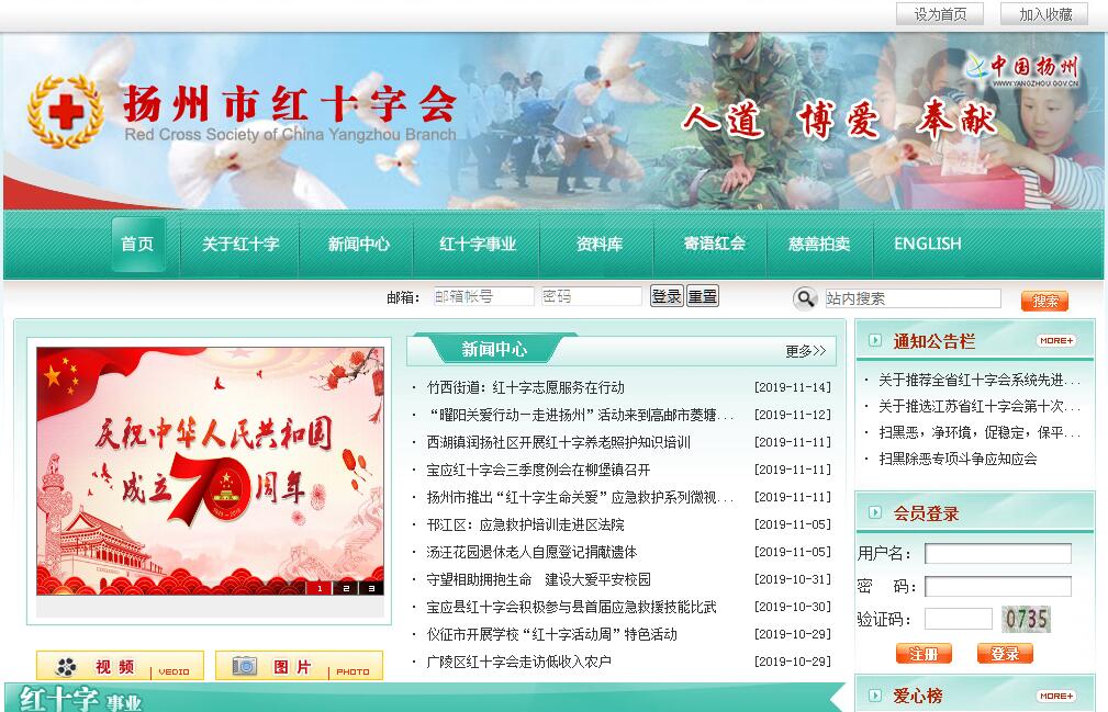 1911年8月中国红十字会扬州分会建立。1956年,地辖扬州市红十字会成立。1983年扬州体制改革建立省辖市,1984年5月3日经扬州市人民政府批准,成立省辖扬州市红十字会。在政府和上级红十字会的的重视、指导、支持和资助下,扬州市红十字会事业得到了迅速发展,在依法建会、红十字运动知识普及、国际人道法传播、救灾救助、卫生救护培训、无偿献血、红十字青少年工作、捐献造血干细胞及遗体捐献等方面取得了显著成绩,树立了人道主义社会救助团体的良好形象,成为社会发展的重要组成部分,为构建和谐社会作出了积极的贡献。1933年扬州分会改为江都县分会。1937年12月14日扬州被日军侵占后江都县分会工作被迫停顿。抗日战争胜利后,总会于1945年11月21日发布通告“整顿分会,以振会务”。1946年江都县分会进行分会复员筹备工作。王玉光、杨佳如等于1946年10月25日在南柳巷45号召开筹备会议,成立筹备处。同年12月1日召开会员代表大会暨分会医院开幕典礼,选举杨佳如为会长,朱干臣、蒋仁宇为副会长,王玉光为总干事,理事21人。扬州分会、江都县分会时期不独立设办公室,主要工作由总干事负责。下设:总务组。分管文书、人事、事务、会计;业务组。分管医务、社会服务。1956年,在江苏省红十字会的指导下,经扬州市人民政府批准,扬州市红十字会正式恢复建立,组建第一届理事会。1962年,扬州市红十字会组建第二届理事会。文化大革命期间,扬州市红十字会工作全部停顿。1982年12月13日经扬州市人民政府批准,(扬府发 [1982] 307号),恢复扬州市红十字会工作,重新组建理事会。1984年5月3日经扬州市人民政府批准,省辖扬州市红十字会正式成立,组建扬州市红十字会第三届理事会。1988年9月18日扬州市红十字会组建第四届理事会。同时在组织建设工作过程中,为贯彻江苏省红十字会关于“对县市优先恢复或建立红十字会”指示精神,结合扬州市实际情况,报请扬州市人民政府批准,对县(市、区)红十字会进行恢复和组建。宝应于1991年、高邮于1990年、江都于1988年、仪征于1990年、广陵于1996年、郊区(维扬)于1992年、邗江于1988年分别组建了红十字会。1996年1月5日扬州市红十字会组建第五届理事会。2004年11月9日组建第六届理事会。2009年6月26日组建第七届理事会。全市共有基层组织236个,其中企业1个,事业单位66个,乡镇24个,街道2个,中学77个,小学66个;成人会员10485人,青少年会员84157人(其中大学410人,中学44495人,小学39252人),团体会员单位113个。