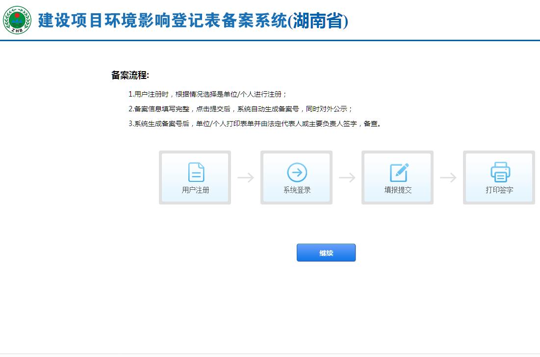 > 湖南省建设项目环境影响登记表备案系统