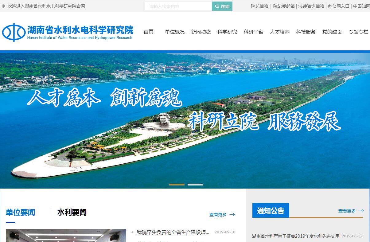 湖南省水利水电科学研究院隶属于湖南省水利厅,成立于1960年,是湖南省水利行业唯一具有独立法人资格的公益类科研机构。主要承担水利水电基础性科学技术研究工作;承担水利水电工程新技术、新材料和新工艺等方面的研究与推广应用工作;承担灌溉试验研究和技术指导工作;开展水资源保护和管理、水库大坝运行管理安全监测和安全评价等技术服务工作;开展水利水电工程建设相关的技术咨询工作。湖南省水利水电科学研究院的前身是湖南省水利电力科学研究所,1960年1月经省编委同意成立湖南省水利电力科学研究所,同时建立党支部。该所受省科委、电力局双重领导。当年6月,又将省电力工业局所属的水文总站并入该所领导,所内设水利室、电力室和水文室。至1960年,全所有职工431人。该所于1961年9月撤销,大部分人员并入省水利电力设计院。1964年3月,省水利电力厅报经省编委同意恢复省水利电力科学研究所,同时建立党支部。定事业编制50人,当年恢复和兴建了6个灌溉试验站。1965年与省农业科学研究所配合,建立了长沙中心灌溉试验站,进行水稻所需水量、水温、晒田等项试验,还对地、县灌溉试验进行了指导。1966年“文化大革命”开始后,该所工作瘫痪,于1970年8月再次裁撤。1978年4月,中共湖南省委组织部发文批准设立省水利电力科学研究所,属省水利电力局领导,1981年5月恢复湖南省水利电力科学研究所党支部。1983年更名为省水利水电科学研究所,1994年4月成立湖南省水利水电科学研究所党总支。2017年1月更名湖南省水利水电科学研究院,2018年6月成立湖南省水利水电科学研究院党委。全院现有在职职工95人,其中湖南省“121人才工程”人选2人,博士5人,硕士31人,高级职称34人,中级职称37人,科技人员占80%以上。我院设有办公室、党委(纪委)办、财务部、科研生产管理部4个管理部门,以及大坝安全监测中心、水资源与生态环境研究中心、灌溉试验中心、农村水利研究所、防灾减灾研究所、水利发展规划研究所、河流泥沙研究所、水利科技推广中心8个科研部门。还有4家下属公司,包括湖南南方水利水电勘测设计院有限公司、湖南江河水利水电工程建设监理有限公司、湖南科宏大坝监测中心有限公司、湖南省地方电力试验中心。目前我院拥有全省水利系统唯一的省级工程技术研究中心——湖南省大坝安全与病害防治工程技术研究中心以及湖南省水利水电灌溉试验中心站、水资源管理技术研究中心三个科研平台;建有面积200平方米的水利工程质量检测室,配备Stealth-3水下机器人、Leica 全自动测量机器人、Leica GS15一体机GPS等专用仪器设备,能够进行力学、岩土、量测、水泥等专业110余个检测项目试验;拥有水利科技咨询甲级、水利工程施工监理甲级、水利水电工程设计乙级、水利工程质量检测乙级、工程咨询丙级、计算机信息系统集成等多项资质,并通过ISO9001:2008质量认证。近年来,我院不断改革创新、开拓进取,为湖南的水利事业及人水和谐做出了积极的贡献,共完成科研项目106项,包括水利部重大公益项目、“十三五”重大水利科技项目、省科技厅重大科技项目、省水利厅水利科技项目等。先后获得各类科研成果奖73项,其中:国家发明三、四等奖各1项,国家建设部科技进步三等奖1项,大禹水利科学技术三等奖2项,省部级科技进步二等奖6项、三等奖18项、四等奖2项,省水利水电科技进步一等奖8项、二等奖15项、三等奖18项,省农业科技进步奖1项。主持和参与编制省部级技术标准、设计规范4项。我院在抓好水利科研工作的同时,积极投身水利水电建设事业,承接水利水电工程勘测、设计、监理等任务。形成了以水库大坝安全监测及评价、水资源保护及饮水安全、节水灌溉、灌区规划、河流泥沙、防灾减灾、河湖长制、遥感信息等研究方向的技术优势。我院突出党建引领,抓党建促转型,紧紧围绕我省水利事业改革发展,紧盯科学研究,技术服务与人才培养三大任务,顺应改革要求,转型发展,开拓奋进。我院将以“人才为本,创新为魂,科研立院,服务发展”为发展理念,与时俱进、开拓创新,为我省水利水电可持续发展提供强有力的科技支撑。