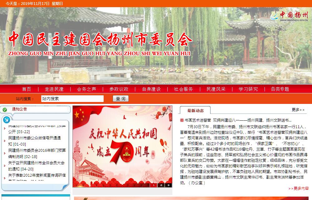 扬州市民建组织筹建于1956年3月。在此之前,扬州工商界代表人士于汝成于1951年10月在北京加入民建组织。1956年3-6月间,民建江苏省工委领导人张敬礼、施宪章等几次来扬,推动民建组织的建立和发展工作,建立了筹备小组,先后两批共吸收会员40人。按照当时党派的分工,民建发展的对象,主要是上中层工商业者,他们绝大多数人是建国以后在资本主义工商业社会主义改造过程中涌现出来的进步分子。1956年6月25日举行会员大会,选举产生民建扬州市支部委员会,由委员7人组成,于汝成任主任委员,管梦轩、虞辟非任副主任委员。1959年3月,民建支部委员会进行改选,仍由于汝成任主委。管梦轩、虞辟非任副主委。民建扬州市支部委员会建立后,与扬州市工商业联合会合址办公,简称“两会”,形成了长期的亲密合作的关系。1980年9月举行第一次会员大会,选举产生了由于汝成、卞孝萱、马治国、许大与、韦开祥、王耀先、张伯良、张锦贵、虞辟非等9人组成的第一届委员会,于汝成任主任委员、卞孝萱、马治国、许大与(驻会)、韦开祥任副主任委员,许大与兼秘书长。1984年10月举行第二次会员代表大会,选举产生了由于汝成、徐与人、许大与、韦开祥、史 挥、卜连歧、马永庆、张师兰(女)、赵云轩等9人组成的第二届委员会,于汝成任主任委员,徐与人、许大与、韦开祥、史挥任副主任委员,许大与兼秘书长。决定马治国、王耀先、张伯良、张锦贵、虞辟非为顾问。1987年8月增补张海曙、王永福为市委委员。根据省民建指示,自1988年下半年开始,民建泰州市委员会划归扬州市民建领导。1988年10月20-21日召开中国民主建国会扬州市第三次会员代表大会,徐与人作《增强政党意识,加强自身建设,为改革开放和社会主义现代化建设贡献力量》的大会报告,选举产生了由许大与、徐与人、张海曙、史 挥、王振书、卜连歧、马永庆、王永福、孔繁浙、梅龙珠(女)、偶文雄、赵云轩、胡志超、黄秉乾等14人组成的第三届委员会,由许大与任主任委员、徐与人、史挥、张海曙、王振书任副主任委员,于汝成为名誉主任委员(于1991年2月10日去世)。韦开祥为顾问,张海曙兼任秘书长,胡志超为副秘书长。1989年8月6日召开民建扬州市三届八次全委会,增选孔繁浙为副主任委员。1992年4月14-15日在扬州市第二招待所培训楼大会议室召开中国民主建国会扬州市第四次会员代表大会,许大与作《加强自身建设,发挥政党职能,为建设有中国特色的社会主义作贡献》的大会报告,选举产生了由王振书、王永福、孔繁浙、史挥、朱志村、陈艺敏(女)、周焕成、戴家坤、胡志超、张邦藩、张海曙、徐与人、偶文雄、梅龙珠(女)等14人组成的民建扬州市第四届委员会,在四届一次全委会上,选举周焕成任主任委员,徐与人(1998年2月15日去世)、史挥、张海曙、王振书、孔繁浙任副主任委员,胡志超任秘书长,许大与为名誉主任委员(于2000年8月11日去世),韦开祥为顾问(于1999年1月31日去世)。1995年3月28日在民建扬州市四届十七次全委会上增选张邦藩为副主任委员。1996年7月24日在民建扬州市四届二十二次全委会上增补王克胜为市委委员。1996年10月15-16日在扬州市人民大厦举行中国民主建国会扬州市第五次会员代表大会,周焕成作《加强自身建设,积极参政议政,切实履行参政党地方组织的职能》的大会报告。选举产生了由孔繁浙、王克胜、冯正初、朱志村、刘玉麟(女)、杜道生、张永成、张邦藩、周焕成、周继华、徐家昌、曹蓓蓓(女)、鲍家惠(女)等13人组成的民建扬州市第五届委员会,在五届一次全委会上,选举周焕成任主任委员,孔繁浙、张邦藩、王克胜任副主任委员,曹蓓蓓任秘书长。1999年2月8日民建扬州市委召开五届十一次会议,选举王克胜为主任委员、增选高文朗为市委委员、副主任委员,并决定高文朗兼任秘书长。会议同意周焕成辞去市委委员、主任委员职务的请求,同意曹蓓蓓辞去秘书长的请求。2001年10月30-31日在扬州市政协礼堂会议室,召开中国民主建国会扬州市第六次代表大会,王克胜作《内强素质,外塑形象,为开创新时期我会工作的新局面而努力奋斗》的大会报告。选举产生由王一舒、王克胜、冯正初、叶建泉、杜道生、汪健(女)、沈洁、周继华、恽瑞池、徐家昌、高文朗、曹蓓蓓(女)、黄建灿、程兆君(女)、蔡跃等15人组成的第六届委员会,在六届一次全委会上,选举王克胜任主任委员,高文朗、徐家昌、沈洁任副主任委员,决定高文朗兼任秘书长。2002年12月王克胜当选为民建中央委员。2003年1月王克胜当选为市政协副主席。2006年12月5—6日中国民主建国会扬州市第七次代表大会在扬州召开,大会选举了由王一舒、王克胜、冯正初、叶建泉、朱永海、李炜、汪健、陈亚军、沈洁、恽瑞池、徐家昌、高文朗、黄建灿、程兆君、蔡跃等15人组成的民建扬州市第七届委员会委员。在民建扬州市第七届委员会第一次全体委员会议上,选举王克胜为主任委员,高文朗、徐家昌、沈洁、黄建灿为副主任委员,决定任命高文朗兼任秘书长。2007年5月在民建江苏省第七次代表大会上,王克胜、高文朗、沈洁三人当选为省委委员;王克胜、高文朗当选为江苏省出席中国民主建国会第九次全国代表大会代表;在民建江苏省七届一次全体会议上,王克胜当选为副主任委员。2007年9月30日在民建扬州市七届五次全委会