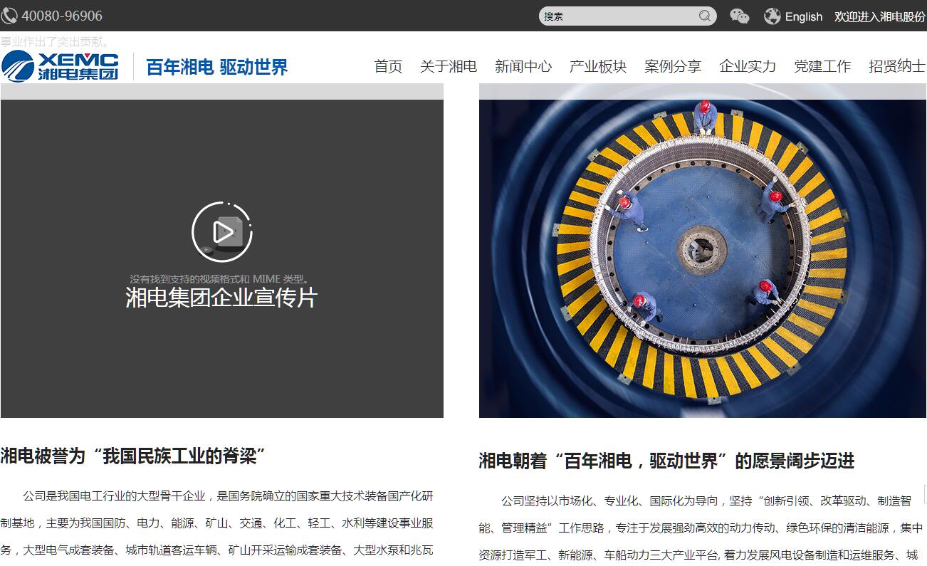 湘电集团拥有80余年发展历史,前身为始建于1936年的中央电工器材厂,1953年更名为第一机械工业部湘潭电机厂,2007年更名为湘电集团有限公司。公司主业部分湘潭电机股份有限公司于2002年7月在沪上市(湘电股份600416)。截止至2017年底,集团拥有全资子公司5家、控股公司7家,总资产277亿元,实现营业收入131亿元。公司“一五”期间被列入国家156项重点建设项目,上世纪80年代跻身于全国500家最大工业企业行列、90年代列入520户国家重点企业。研制开发新产品1100多项,其中100多项填补国内空白,先后荣获国家高技术武器装备发展建设工程突出贡献奖2次、国家特等奖5项、国家科技进步一等奖9项、二等奖12项及部、省发明创新奖50余项,为我国重大装备国产化事业作出了突出贡献。公司是我国电工行业的大型骨干企业,是国务院确立的国家重大技术装备国产化研制基地,主要为我国国防、电力、能源、矿山、交通、化工、轻工、水利等建设事业服务,大型电气成套装备、城市轨道客运车辆、矿山开采运输成套装备、大型水泵和兆瓦级风力发电成套装备等产品的开发应用在国内起主导作用,拥有国家认定企业技术中心、海上风力发电技术与检测国家重点实验室、国家能源风力发电机研发(实验)中心、湖南省风力发电工程技术研究中心、湖南省工矿电传动车辆工程技术研究中心等5个国、省级技术创新平台。公司坚持以市场化、专业化、国际化为导向,坚持“创新引领、改革驱动、制造智能、管理精益”工作思路,专注于发展强劲高效的动力传动、绿色环保的清洁能源,集中资源打造军工、新能源、车船动力三大产业平台, 着力发展风电设备制造和运维服务、城市轨道交通牵引系统、新能源汽车电驱动系统、分布式能源等核心业务群,致力于把湘电建设成为集高端装备制造、服务、贸易、投融资于一体的负责任、受尊重的大型企业集团。