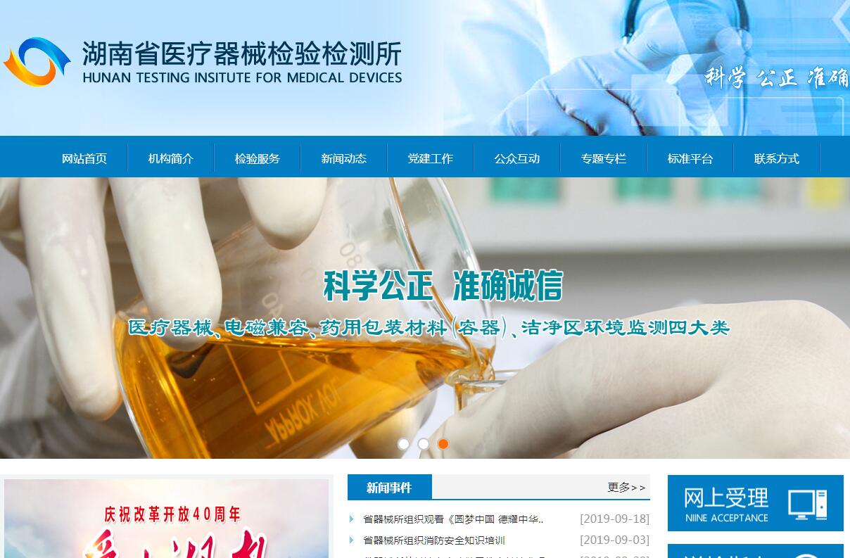 湖南省医疗器械检验检测所成立于2002年3月,原名湖南省医疗器械与药用包装材料(容器)检测所。2015年10月经湖南省食品药品监督管理局党组决定,湖南省编制委员会批准更为现名,为正处级事业单位。专业从事医疗器械产品、药品包装产品的注册检验、监督检验及委托检验等工作,参与和承担医疗器械国家标准、行业标准及地方标准的制修订和宣贯工作,组织开展医疗器械的标准研究及安全监测和质量控制方法、技术研究。全所在编干部职工30人,其中具有高级技术职称的5人,具有中级技术职称15人,大学本科以上人数约占总人数的95%。在专业技术队伍中,拥有国家局资格认可评审员、GMP、GSP检查员,国家医疗器械生产质量管理规范检查员、国家药品评价性抽验网上评议专家库成员、省医疗器械技术审评专家、省医疗器械经营企业现场检查员、药用辅料产业技术创新联盟专家委员会委员、中国乳胶制品标准化委员会委员等。所内设办公室、业务科、化学检验室、物理检验室、医用电器室、生物安全室6个科室。现有建筑面积近4500平方米,其中实验室面积约3000平方米,固定资产近2800万元。拥有包括电磁兼容三米法半电波暗室、气-质联用仪、电感耦合等离子质谱仪、高效液相色谱仪、气相色谱仪、原子吸收分光光度计、眼科光学接触镜测试系统、轮椅车测试系统、电能质量分析仪、耐压测试仪、接地电阻测试仪、标准恒温槽、四通道便携式测温仪、呼吸机分析仪等各类检验检测仪器设备。先后通过了湖南省技术监督局的实验室资质认定、国家食药监总局医疗器械检测机构资格认可和国家实验室认可。2015年7月通过国家认监委实验室资质认定。现有检验能力主要包括医疗器械、电磁兼容、药用包装材料(容器)、洁净区环境监测四大类,获得资质认定项目353项。成立至今,坚守“科学公正,准确诚信”的质量方针,认真履行职责,积极开展国家医疗器械监督抽验、省内医疗器械监督抽验等工作,为医疗器械监管提供技术支持,确保人民群众用械安全。2015年完成国家抽验一次性使用输液器、电子体温计、天然胶乳避孕套3个品种的检验工作和质量分析总结报告。展望发展前景,我们将全面落实国家总局和湖南省局工作部署,着眼服务行政监管和产业发展需求,规划“十三五”发展路径,全面提升检验和科研能力,打造专业型实验室,努力开创湖南医疗器械检验检测工作的新局面!