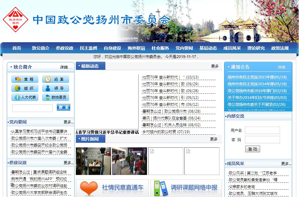 中国致公党是以归侨、侨眷中的中上层人士为主组成的,具有政治联盟特点的,致力于建设有中国特色社会主义的政党。中国致公党由旅美华侨社团、海外洪门组织美洲致公总堂发起,于1925年10月10日在美国旧金山成立。长期以来,本党为争取祖国独立、富强和维护华侨的正当权益而奋斗。1947年5月,本党在香港举行第三次代表大会,进行改组,从此走上了同中国共产党真诚合作、共同奋斗的道路,为新民主主义革命的胜利和建设新中国,为社会主义革命和建设事业,为推进改革开放和祖国统一大业作出了积极贡献。致公党成立至今,已召开十四次全国代表大会,历届中央委员会主席为陈其尤、黄鼎臣、董寅初、罗豪才。现任主席万钢,常务副主席蒋作君,副主席王珣章、程津培、严以新、黄格胜、曹小红(女)、李卓彬、闫小培(女)、曹鸿鸣。扬州市致公党组织自1985年建立,至今己有近三十年。在致公党江苏省委和中共扬州市委领导下,在中共扬州市委统战部的帮助下,不断提高组织群体的政治素质,加强组织建设,认真履行参政党职能,积极投身社会主义现代化建设事业。近年来,本党根据实际情况,每年以一个主题活动作为全年的工作主线,围绕这个主题布置具体的工作内容和要求,有目标、有计划、有步骤的开展工作。从2002年开始,分别以“参政议政提高年”、“基层组织建设年”、“参政党意识提高年”、“回顾、展望、作为年”作为当年的工作主题,紧紧围绕这一主题开展各项学习、参观、考察、调研活动。根据省委的要求和自身建设的需要,多年来致公党扬州市委举办了不同层次的学习班、培训班或研讨班,请专家作学习辅导报告,组织党派干部学习邓小平理论、“三个代表”重要思想和科学发展观,组织新成员学习统战理论、党派知识,组织骨干成员研讨社会调研方法和民主党派建设理论。通过多种形式的学习活动,成员增强了政治敏锐性和政治责任感,政治思想素质和道德品质得到了提高,从而在树立参政党意识、履行参政党职能、提高组织群体素质方面取得了较好的效果。