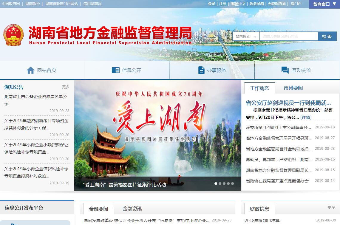 湖南省地方金融监督管理局主要职责:(一)贯彻执行金融工作法律、法规和方针、政策;拟订全省金融业发展规划和政策,提出改善金融发展环境、促进金融业发展的建议。(二)负责地方金融业统计分析工作,研究分析国家金融政策、宏观金融形势和全省金融运行情况,会同有关部门推进全省金融市场体系建设。(三)协调、配合中央驻湘金融监管部门对全省各类金融机构的监管;负责联系协调驻湘金融机构,做好相关服务工作;协调推进地方法人银行、保险机构、非银行业金融机构的设立和规范发展;协调推进农村金融综合改革、普惠金融和金融扶贫工作。(四)拟订全省多层次资本市场培育、改革和发展的政策措施;负责全省上市后备资源培育,协调和推动企业上市挂牌工作;配合相关部门做好上市公司资产重组、规范发展工作;协调推动股权投资行业规范发展和债券融资工作。(五)组织协调有关部门防范化解地方金融风险,维护金融稳定;协调有关部门依法做好防范和处置非法集资工作;负责金融知识宣传教育,加强金融消费者权益保护工作。(六)负责小额贷款公司、融资担保公司、区域性股权市场、典当行、融资租赁公司、商业保理公司、地方资产管理公司的监督管理。(七)按照国家有关规定和政策要求,强化对辖区内投资公司、开展信用互助的农民专业合作社、社会众筹机构、地方各类交易场所的协调监管。负责协调相关部门加强对互联网金融的监管。(八)负责地方金融信用体系建设,组织有关部门推进金融安全区创建,改善金融生态环境。(九)承担省金融改革发展领导小组的日常工作;会同有关部门推进全省金融人才队伍建设工作。(十)会同有关部门指导和支持金融中介机构、地方金融行业协会规范发展。(十一)承办省委、省政府交办的其他事项。