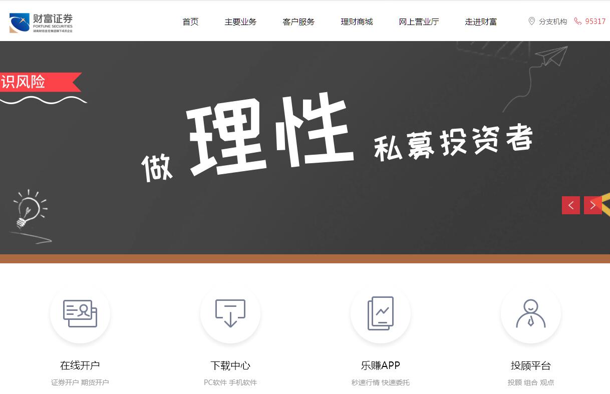 财富证券有限责任公司(简称“财富证券”)是湖南财信金融控股集团有限公司旗下核心企业,湖南省唯一的省属国有控股证券公司。公司成立于2002年8月,注册资本39.65亿元,控股股东为湖南财信投资控股有限责任公司,持股比例为96.49%。截至2018年12月31日,公司总资产规模 203.25亿元 ,净资产规模 60.01亿元 。公司业务范围涵盖证券经纪、投资银行、资产管理、投资咨询、融资融券、固定收益、证券投资、场外市场、期货经纪、另类投资、基金投资等;全资拥有德盛期货有限公司、另类投资公司深圳惠和投资有限公司、私募基金公司深圳市惠和基金管理有限公司;全国设有4家分公司,75家营业部;现有员工1800余人。公司依托控股股东牌照齐全、实力雄厚的金融控股平台,在债券承销、互联网金融、固定收益投资等领域形成并保持了行业竞争优势,可以全方位满足企业与个人投资者多元化金融服务需求。公司在国家发改委2017年度企业债券主承销商信用评价中,排名全行业第3位,荣获中央结算公司“2017年中债优秀承销机构奖”,近年来,公司还荣获长沙市规模效益奖,湖南省文明标兵单位、湖南省科学技术二等奖、湖南金融创新力量奖,中国证券业协会优秀课题报告,中国证券期货业优秀融资扶贫奖、优秀定点扶贫奖、最佳产业扶贫项目奖,以及证券时报“中国区最佳债券投行”、“中国区最佳企业债承销团队”、“中国最具突破证券经纪商”、“十佳银行间债券投行”、“五星扶贫债券承销商”等多个奖项。