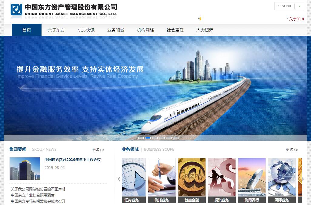 中国东方资产管理股份有限公司(简称中国东方)是由财政部、全国社保基金理事会共同发起设立的国有大型非银行金融机构。公司前身为中国东方资产管理公司,成立于1999年10月。自成立以来,中国东方始终以“保全国有资产、化解金融风险、促进国企改革”为使命,将依法合规经营作为生命线,累计管理处置各类不良资产超万亿元,为国家金融系统的稳定做出了积极的贡献。2016年,经国务院批准,公司改制为股份有限公司。2018年,面对复杂严峻的外部形势,中国东方以习近平新时代中国特色社会主义思想为指导,在银保监会党委的正确领导下,在财政部和股东单位的关心支持下,全面服务实体经济,将发展不良资产主业作为全年工作重中之重,大力推进市场化债转股业务,深度参与上市公司、实体企业危机救助。截至2018年末,中国东方集团合并总资产超过万亿元,在国内各中心城市设有25家分公司和1家经营部,业务涵盖资产管理、保险、银行、证券、信托、普惠金融、信用评级和海外业务等。拥有中华联合保险集团股份有限公司、大连银行股份有限公司、东兴证券股份有限公司、中国东方资产管理(国际)控股有限公司、邦信资产管理有限公司、上海东兴投资控股发展有限公司、东方前海资产管理有限公司、东方邦信融通控股股份有限公司、东方金诚国际信用评估有限公司、大业信托有限责任公司、东方邦信创业投资有限公司和浙江融达企业管理有限公司等12家控股公司,员工总数6万6千余人,服务网络覆盖全国。展望未来,中国东方将切实提高政治站位,进一步深化改革、强化合规、提质增效、全面转型,客观判断谋发展,守正创新求突破,稳中求进善作为,推动集团迈向更高层次、更高质量发展的崭新局面,努力建设符合新时代中国特色社会主义发展要求,治理规范、管控有力、服务专业、文化先进、业绩一流的现代金融服务企业。