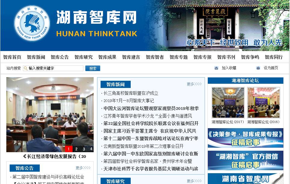 为了加强湖南省智库平台建设,中共湖南省委办公厅、湖南省政府办公厅在下发的《关于加强湖南新型智库建设的实施意见》(湘办发[2015]33号)中明确要求创办“湖南智库网”。根据相关工作安排,湖南智库网”(www.hnzk.gov.cn/)由省委宣传部主管,由中共湖南省委、湖南省人民政府直辖的多学科、多领域、多功能的战略性综合智库——湖南省社会科学院主办。为贯彻落实文件精神,在中共湖南省委宣传部的直接领导和有关部门的大力支持下,湖南智库网(www.hnzk.gov.cn/)于2015年9月17日正式开通运行。湖南智库网网站的建设开通是落实省委、省政府关于推进新型智库建设部署的实际行动,将与《决策参考•智库成果专报》、“湖湘智库”微信号(huxiangzhiku)共同组成我省智库建设的三大新媒体平台。湖南智库网(www.hnzk.gov.cn/)以服务于党和政府重大决策、服务于湖南改革攻坚为宗旨,以推进新型智库建设为目标,致力于分享智库研究成果、交流智库建设经验、加强智库单位合作,搭建“互联网+”时代的全省高校、社科研究单位、政府、企事业单位及民间智库等进行全方位交流的高端智库平台。网站目前主要包括智库资讯、智库要闻、智库前沿、智库会议、智库征稿、改革攻坚、建言献策、热点争鸣、智库时评、智库风采、智库专报、智库书刊、成果发布等栏目。