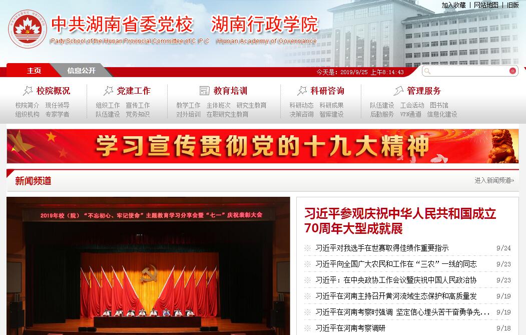 中共湖南省委党校是省委领导下培养党员领导干部和理论干部的学校,是省委的重要部门,是培训轮训党员领导干部的主渠道,是党的哲学社会科学研究机构。湖南行政学院是培训公务员、培养公共管理人员和政策研究人员、开展社会科学研究和决策咨询的机构,是省政府直属单位。中共湖南省委党校起源于大革命时期的中共湖南区委党校,正式成立于1951年8月,湖南行政学院始建于1953年。2003年8月,中共湖南省委党校与湖南行政学院整合实行“两块牌子,一套人员”的管理体制。校(院)坐落于国家级重点风景名胜区岳麓山北麓,占地460亩,建筑面积20余万㎡,可同时容纳2000余名学员学习。省委副书记乌兰兼任省委党校校长。校(院)设有35个内设机构及机关纪委,现有教职工487人。有正高职称人员63人(其中二级教授9人),副高职称64人,硕士生导师67人,博士58人,享受国务院特殊津贴专家5人、省政府特殊津贴专家2人,省学术技术带头人8人。1人入选“新世纪百千万人才工程”国家级人选,1人入选省首批智库领军人才,1人入选省优秀青年社会科学专家,9人入选新世纪“121”人才工程,2人入选全国干部教育培训名师库。校(院)有1个国家级科研基地、5个省级科研基地、9个省级学会。有政治学、公共管理、马克思主义理论3个一级学科,有14个学术型硕士学位授予点、3个专业学位硕士授予点。内设省共青团干部学校、省妇女干部学校、省民族干部学校。校(院)主要培训班次有厅级干部进修班、县委书记培训班、县市区长培训班、中青年干部培训班、处级干部进修班、公务员任职培训班、乡镇党委书记培训班、乡镇长培训班,以及各类专题培训班,年均培训轮训1.5万人左右。校(院)办有公开刊物《湖湘论坛》《湖南行政学院学报》。《湖湘论坛》以立足学术前沿、突出基础理论、坚持湖湘特色、探讨兴湘方略为宗旨,是CSSCI来源期刊、RCCSE学术核心期刊;《湖南行政学院学报》以促进知识创新、繁荣社科研究为己任,是RCCSE学术核心期刊(扩展版)。内部报刊有《湖南党校》报、《理论集萃》《在职研究生教育》。图书馆藏书65万多册,初步建立了理论信息、省情资料等一系列数据库。经过努力,校(院)事业持续发展,综合实力与办学水平稳步提升。国家课题立项数位居全国同行前列,形成了以国家重大课题为龙头的国家课题群;连续四届蝉联全国党校系统精品课奖;入选湖南省首批重点智库、中国核心智库的综合性智库。获得了省直文明标兵单位、省文明单位、省平安单位、省文明卫生单位、省级园林式单位、计划生育红旗单位,以及全国民族团结进步模范集体、全国节约型公共机构示范单位等荣誉。在省委省政府领导下,中共湖南省委党校、湖南行政学院认真学习贯彻习近平新时代中国特色社会主义思想和党的十九大精神,坚持党校姓党、行政学院姓党,坚持用学术讲政治,坚持从严治校、质量立校、实干兴校,着力推动教学、科研、咨询一体化发展,为培养造就高素质干部队伍、加快建设富饶美丽幸福新湖南而不懈努力。