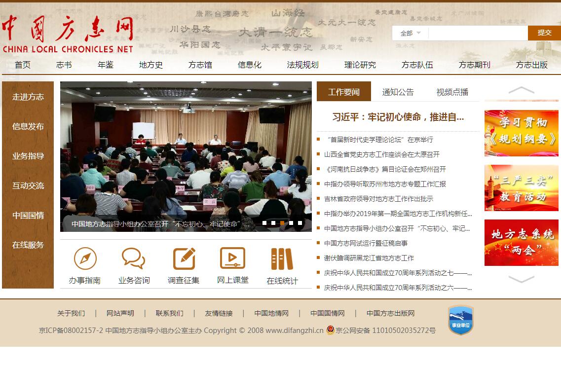 | 网站简介: 中国方志网是中国地方志指导小组主管,中国地方志指导小组主办的全国地方志系统门户网站,是全国地方志系统的信息发布平台、在线服务平台和互动交流平台。新版中国方志网坚持集约化、扁平化、标签式、一屏展示、智能化的建网思路,凸显方志文化特色。中国方志网将和广大网民一起,共同打造全国地方志工作者和爱好者的精神家园。 |