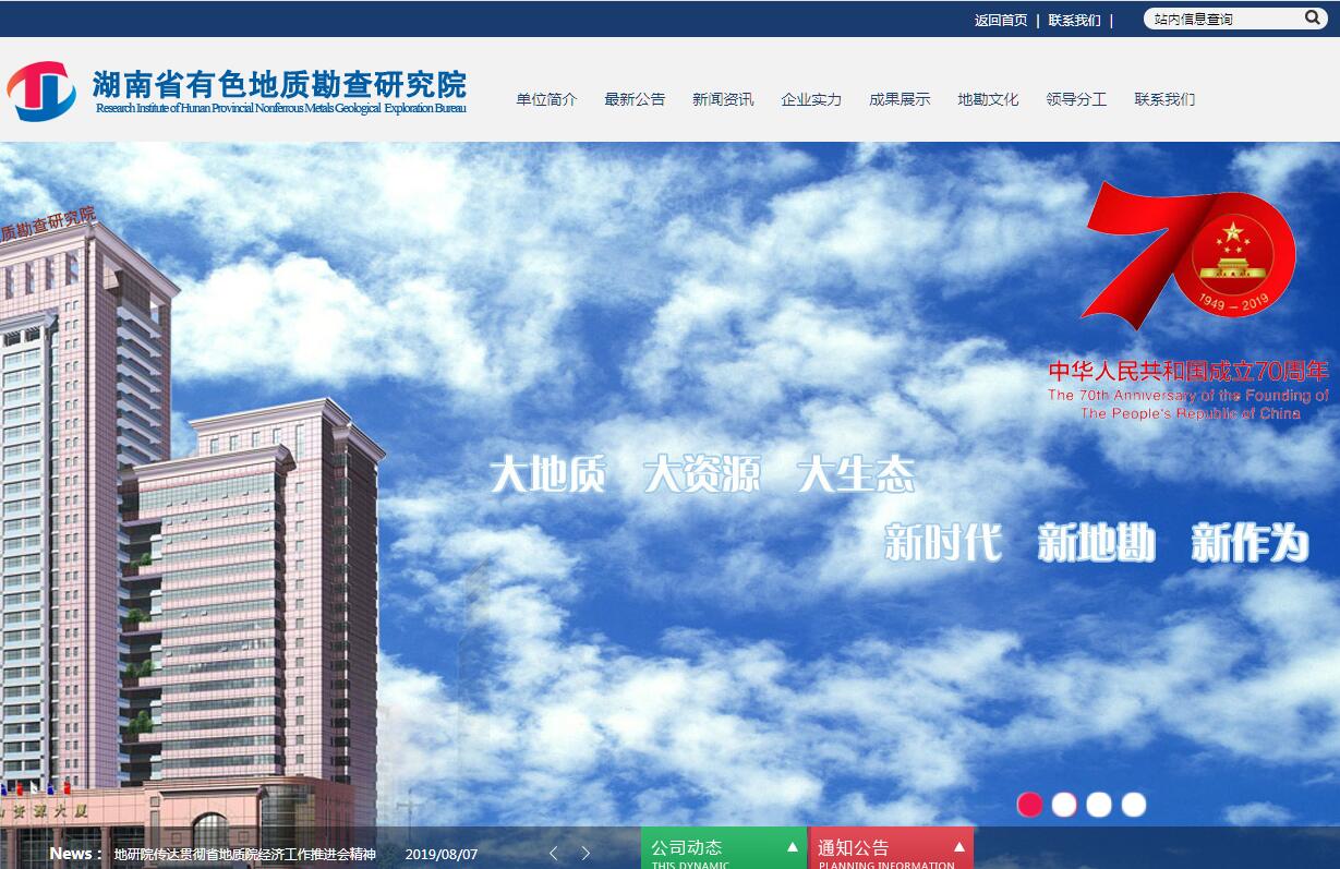 湖南省有色地质勘查研究院成立于1954年,是原重工业部在全国布局的三大有色地质科研院所之一。近年来,坚持用大地质大资源大生态观统筹地质科研工作,积极融入资源地质、民生地质、环境地质、城市地质、农业地质、地理信息、工程勘察、建筑检测等领域的工作,主动作为湖南“创新引领、开放崛起”战略和“三深一土”国土资源科技创新战略。我院拥有国土资源部颁发地质勘查甲级资质10个、地灾防治甲级资质4个,住建部颁发工程勘察甲级资质2个;省国土资源厅颁发乙级资质1个,省住建厅颁发乙级资质1个、建筑工程质量检测资质6个,长沙市住建委颁发建筑工程施工总承包三级资质。我院属知识密集型公益性地质科研单位,现有在职职工292人,其中博士7人、硕士47人、本科184人,本科以上占82%;教授级高工6人、高级工程师83人、工程师161人,工程师以上占86%;享受国务院特殊津贴专家2人、全国劳模1人、湖南省劳模2人。我院先后探获沅陵沃溪锑金矿、内蒙霍各乞铜铁矿、蒙古国敖包锌矿等大、中型矿床20余处,为几十余家大中型矿山企业提供技术支撑。先后参与5.12汶川大地震抗震救灾地质灾害应急排查和2017年长沙宁乡灾后重建等公益技术服务工作。每年完成地质找矿与科研、工程勘察与检测项目3000余个,技术服务经济总量逾亿元。荣获全国科学技术工作重大贡献奖、国家科学技术进步二等奖、全国地质勘查行业先进集体、全国勘察设计行业AAA级信用企业、中国有色金属工业地质找矿一等奖等荣誉。