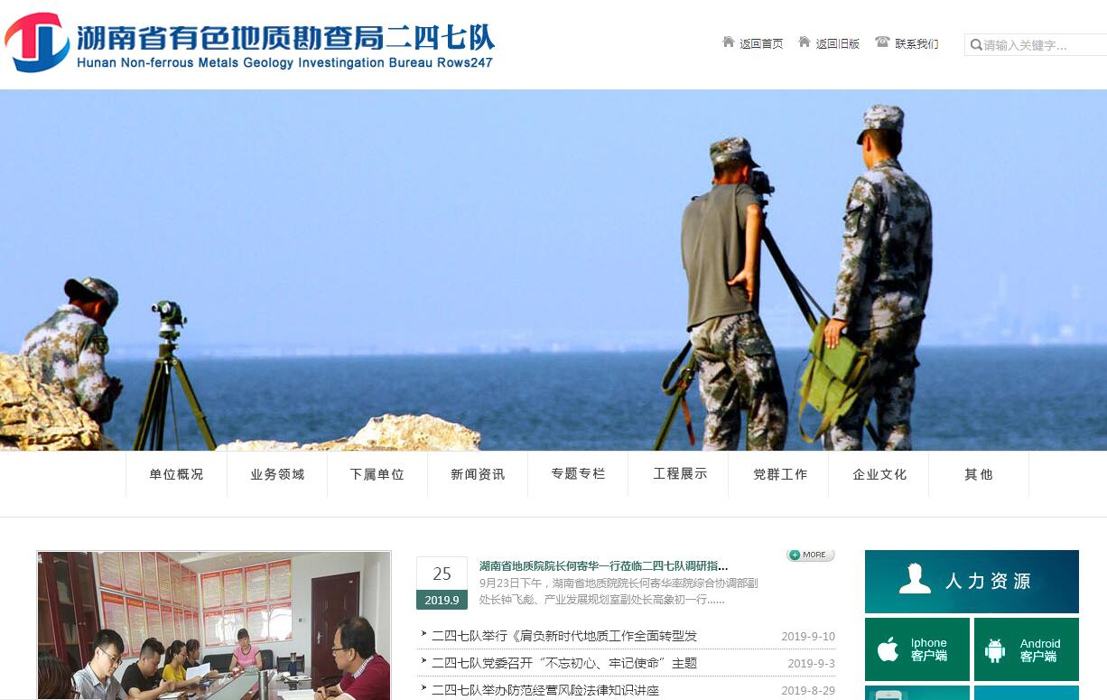湖南省有色地质勘查局247队成立于1954年,现隶属于湖南省有色地质勘查局,地处长沙经济技术开发区,地理位置优越,交通条件便捷。拥有在职职工287人,大中专学历占80%以上,中高级职称占45%。247队目前拥有固体矿产勘查、地球物理勘查、地球化学勘查、水工环地质勘查、地质灾害治理工程设计、地质灾害治理工程勘查、工程勘察、工程测量、水文地质勘察、不动产测量10个甲级资质;是湖南省工商局授予“重合同、守信用”单位,近几年来全面通过了ISO9001:2000质量体系认证,ISO1401:2004环境管理体系及职业健康安全管理体系。 247队机关下设9个职能部门,分别为:办公室、党群办、财务科、劳动人事科、审计科、纪检监察室、工程安全科(物资设备科)、计划经营部、总工办(综合研究室);设经营实体9个,分别为:地质勘查院、西藏勘查研究院、地球物理地球化学勘查院、水工环院(湖南有色环境地质研究院有限公司)、湖南有色测绘院有限公司、湖南有色工程勘察研究院有限公司、湖南中色工程建设有限公司、湖南有色二四七队置业有限公司、湖南湘蓉物业有限公司。60多年来,247队在基础地质、矿产地质、工程测绘、水文地质、工程地质、环境地质和科学研究等方面取得显著的成果。先后承担国家、省内及其他省市地质勘查项目100余项,地质找矿成绩斐然,科研能力也不断提高。2010年省两权价款项目——湖南省临湘虎形山钨多金属普查项目,荣获湖南省“十一五”地质找矿成果奖二等奖。2014年自主科研项目获中国有色金属工业科技进行二等奖,测绘院获湖南省测绘地理信息工程奖一奖;积极响应“走出去”战略,海外找矿成绩突出,在巴西建立了地质勘查基地,独立登记矿权29个,在赞比亚找出334铜储量70万吨,在非洲的厄立特立亚寻找黄金十吨,在菲律宾发现中型以上的风化红土型镍矿和超基性岩内的岩浆型铬矿。近年来二四七队经营能力不断提升,年利润保持在1300万元以上。厄立特里亚项目在矿区首次发现VMS型金铜多金属矿床类型,资源远景有望达到大型矿床规模;巴基斯坦俾路支省3个项目,均在进行探矿工程施工,取样结果矿化效果良好;云南彝良毛坪矿区抗震防灾注浆治水帷幕项目,是目前全国最大的水文地质项目。二四七队致力于精神文明建设,先后荣获全国机冶建材系统“工会先进集体”、省“模范职工之家”、省五一劳动奖状、省直文明单位、省有色冶金工会“五一先锋集体”和等荣誉,形成了务实、清廉、上进的企业文化。面向未来,湖南省有色地质勘查局247队将充分发挥有色地勘主力军作用,坚定不移地走富民强队之路,大力推进“立足湖南、面向全国、拓展海外”的经营战略,为创建“产业发达、实力强劲、就业充分、生活宽裕、队风文明、形象一流、管理现代”的充满生机与活力的知名地勘单位而不懈努力。