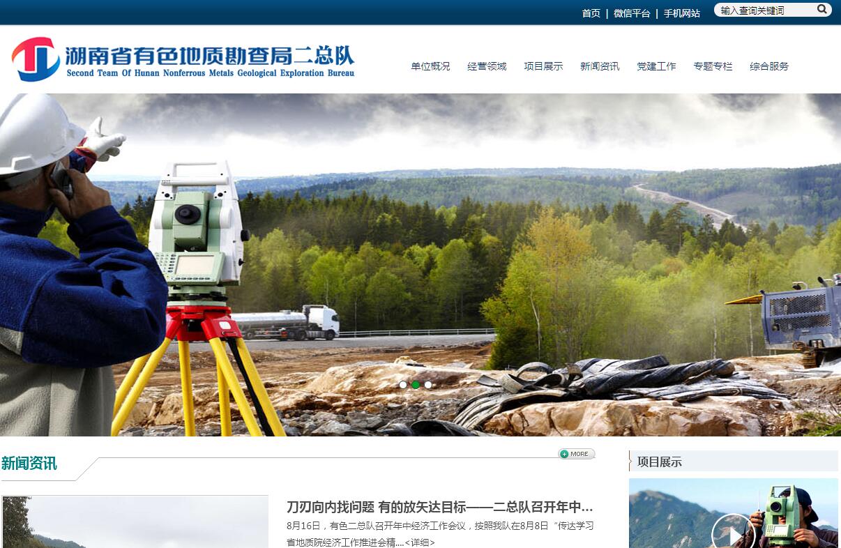 湖南省有色地质勘查局二总队位于湘潭市,2004年由原湖南省有色地质勘查局二三六队(1957年成立)与二四六队(1966年成立)合并组建而成,隶属于湖南省有色地质勘查局,是一支集地质勘查、矿业开发、地灾治理、岩芯钻探、工程测绘、工程勘察、基础施工、物业经营于一体的地矿类事业单位,注册资本16876万元。现拥有职工1067人,中高级专业技术人员近600人,各类施工设备仪器604台套;持有固体矿产勘查、地质钻探甲级;水文地质、工程地质、环境地质调查乙级;地球物理勘查乙级、地球化学勘查乙级;液体矿产勘查乙级;地质灾害治理工程勘查甲级,施工甲级,设计乙级,危险性评估甲级;测绘资质乙级;地质坑探乙级;土地整治资质;地基与基础工程专业承包叁级等资质,年生产施工能力在2亿元以上。二总队在六十多年的光辉历史中共勘查出矿产资源储量近10亿吨,创潜在经济价值超2000多亿元。先后勘查及探明了“亚洲锰都”—湘潭锰矿、“世界锑都”—冷水江锡矿山锑矿等40余个大中型有色(贵)金属、黑色金属及非金属矿床;为湖南乃至我国经济发展做出了卓越贡献。目前,我队在做大做强地质勘查业的同时,还拓展了灾害地质调查、环境地质调查、地球物理与地球化学勘查、地基与基础、房屋建筑、矿业技术服务、测绘等业务,自营矿山双峰县包金山金矿采选矿能力达三万吨/年,深边部黄金资源勘探预计15吨左右,物业资产多达2万多平方米,业务遍及全国十多个省市。先后荣获“全国地质勘查功勋单位”、“大庆式企业”、“湖南省文明建设先进单位”等荣誉称号,七次荣获中国有色金属工业总公司地质成果、优质工程和技术革新一、二、三等奖,在省内乃至国内同行业单位中成绩斐然。
