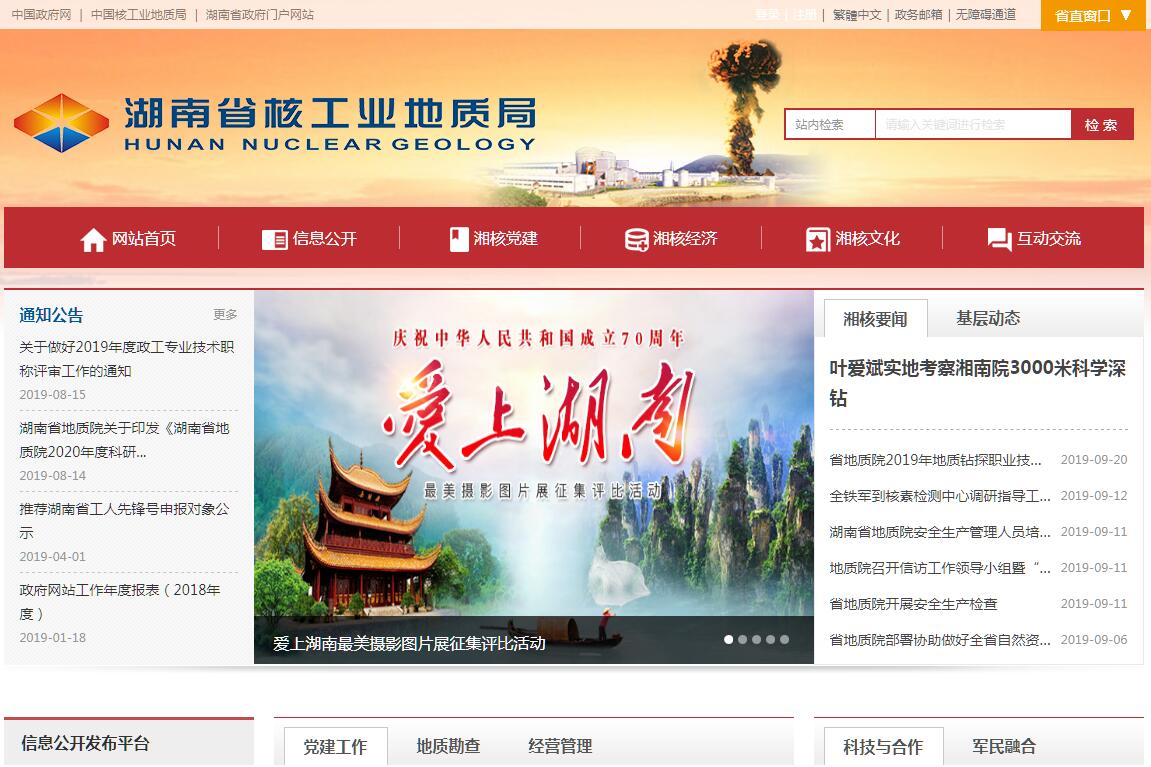湖南省核工业地质局主要职责:(一)按照国家和省有关地质、矿产资源勘查开发、测绘管理、国防工业发展的法律、法规和政策,以及国家和省矿产资源的统一规划,会同有关部门拟定本局核地质工作规划;制定本局核地质勘查开发和其他产业经营等年度工作计划;(二)负责湖南省行政区域内放射性矿产资源的区调、普查、勘探;(三)根据授权,负责管理中南地区核放射性矿产资源储量和放射性矿产地质档案资料;负责放射性计量模型、标准源等放射性材料和物资的管理以及本系统放射性废渣治理的管理。(四)参与国土资源大调查以及基础性、公益性、战略性地质矿产勘查;承担区域性核放射性环境调查评价任务以及放射性矿产资源的勘查,为国家和省提供资源管理所需的基础信息资料;(五)组织指导核地质找矿队伍完成国家、省人民政府和有关部门下达的核地质勘查、地球物理勘探、资源网络信息管理、测绘、科研等工作任务并汇交其成果资料;(六)管理国家和省下达的核地质勘查经费;按照国有资产管理的要求负责监管本局系统的国有资产,并承担国有资产的保值增值责任;(七)统一管理湖南省核地质勘查事业单位,指导所属单位体制改革,逐步推进核地质勘查单位实行企业化经营;负责所属单位领导班子建设;负责本局机关和所属单位的机构编制、干部人事、劳动与社会保障工作;指导所属单位职工队伍建设和精神文明建设。(八)承办省委、省人民政府交办的其他事项。