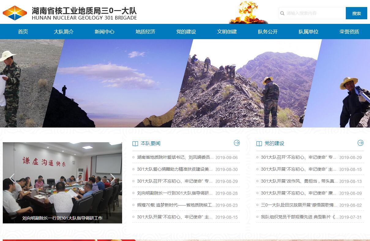 湖南省核工业地质局三〇一大队是全国组建最早的铀矿地质大队之一,其前身是中华人民共和国地质部三〇九队第一分队,1955年3月在广西富钟县花山组建,先后转战湘、桂、粤、黔、赣、豫、滇等7省16个地区,数次搬迁,几度更名,现坐落在长沙市雨花区中意一路977号。60多年的艰苦征程,三0一人用鲜血和生命创造了一个又一个辉煌,为祖国的铀矿地质事业立下赫赫战功:先后完成了10多万平方公里的普查找矿任务,为国家提交远景成矿区x处,大型铀矿床x处,中型铀矿床x处,小型铀矿床x处。有的矿床被国家最早开发利用,为首批核武器研制提供了原料,曾多次受到中央军委的嘉奖和全国科技大会的表彰。60多年的艰苦征程,三0一人凝结了三〇一的“四大精神”——艰苦奋斗、无私奉献的“大湾精神”;精雕细刻、科学求实的“毛荷殿”精神;自力更生、创造条件上的“楠木山”精神;开拓创新、和谐奋进的“第二次创业”精神。涌现出苏致明、肖中银、黎昌桂、吴志明、吴铁明、许平义、刘国华等一批省部级劳模。2000年属地化后,301大队步入了暂新的发展时期,在局党组、局行政的坚强领导下,大队积极融入地方建设,与时俱进、转型发展,水利水电一枝独秀、地质环境一骑绝尘、农业地质一鸣惊人、岩土工程一马当先,打造了集地矿主业、工程产业、资本运营、房产开发及水利水电“五位一体”的经济新格局;大队拥有固体矿产勘查、工程勘察、地质灾害治理等16项甲级资质,测绘、工程监理、工程检测、水利水电施工等几十项其他类资质,能开展矿产勘查与开发、钻(坑)探工程施工、岩土工程勘察、地灾评估与治理、投资运营、房产开发、水利水电施工等各类业务,是一家以地质业为主的实力雄厚的综合性地勘单位。人才队伍建设硕果累累,专业技术水平不断提升,现拥有各类专业技术人员469人(地质类高中级技术人员221人,注册岩土工程师、注册建造师、注册安全工程师35人),培育了如全国帼国标兵——刘晓敏等一批年轻的技术专家;大队先后荣获国家级科技进步奖2项,省部级科技进步奖12项,优秀成果百余项。大队地质主业实现了国家财补项目全覆盖,成功实施了国家财补项目12个,成功实施印尼、老挝、赞比亚、马达加斯加等4个海外风险勘查基金项目,成功实施了商业地质项目18个,各类找矿和科研成果突出,先后提交了一个储量超百万吨的大型钒矿,储量超100万吨的世界级钨矿,储量达千万吨的大型重晶石矿和一个伴生的中型铜矿。同时,为了积极响应气化湖南战略,大队成为首批进军页岩气勘察领域的队伍,并成功实施了花垣页岩气勘察项目。大队在地质灾害治理、生态地质、农业地质、城市地质及城市空间规划等地质延伸业实现了快速发展,其业绩得到省自然资源厅和业内专家的一致好评。如吉首堤子坡滑坡治理、城步县1:5万地质灾害详细调查、洪江区城区地质灾害勘查、怀湖南省洪江市中小学校地质灾害补充调查、怀化和永州等市区汛期抗洪救灾等工作在业内具有较强的影响力,先进事迹多次得到了湖南经视频道、红网、华声在线、腾讯新闻,潇湘晨报及地方电视台报道。大队在工程勘察及水利水电等领域也具有较强的核心竞争力。 先后实施了湘府路大桥水上勘察、桃花江核电站、衡钢二连轧、广深高速公路、武广铁路、邵阳市及常德市本级农村集体土地所有权确权等涵盖勘察、设计、施工、监理、农村土地综合整治及水利水电施工等工程项目5000多个,荣获国家级、省部级、市级科技进步奖及优秀成果奖60余项,十余个项目荣获了中国核工业勘察设计协会优秀工程勘察成果一、二等奖,荣获湖南省住建厅、湖南省建筑业协会颁发的省建筑行业工程质量最高奖项“芙蓉奖”。新时期, 大队在实现跨越发展的同时,大队扎实推进文明创建工作,先后荣获全国文明单位、国家级诚信单位、全国工人先锋号、全国模范职工之家、全国节约型公共机构示范单位、中华全国职工书屋等6个国家级殊荣;荣获湖南省节能减排示范单位,公共机构节水型单位、省国防工会“绩效考核优秀单位”、“长沙市五一劳动奖状”等多项省市级荣誉;近年来,大队领导班子锐意进取,精准定位,落实局“两轮驱动、多业支撑”的工作思路,贯彻局“地质立局、人才强局、创新兴局”的发展战略,培育践行“谦虚、沟通、快乐”的工作理念,按照“突出主业、壮大辅业、务实创新、富民强队”的工作方针,继续举好“核”字大旗,做好地质文章,积极推进转型发展、高质量发展,在新的起点上谱写新的辉煌!