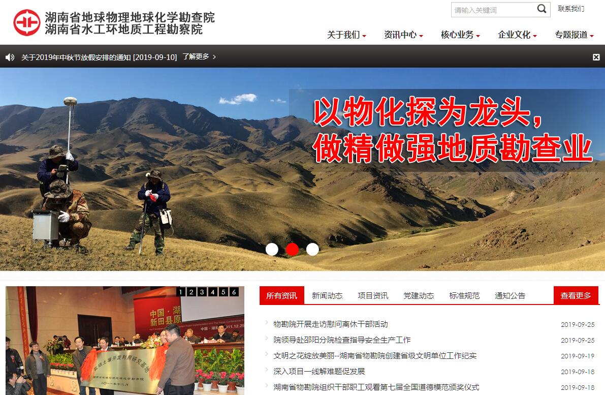 湖南省地球物理地球化学勘查院(简称湖南省物勘院)始建于1958年,隶属于湖南省地质矿产勘查开发局,是全省从事物化探地质勘查为主,同时从事矿产地质、水工环地质、农业地质、旅游地质、工程勘察、工程物探、测绘与地理信息、地质实验与检测、土地规划与土地整理、矿权经营的综合性地勘单位,并通过了ISO9001质量体系、ISO14001环境管理体系、OHSAS18001职业健康安全管理体系认证。建院50余年来,该院完成了国家部、省重点区域性物化探地质勘查项目 1000 余项,提交 60 多处中大型矿产地和 1000 余份科研生产成果报告,其中有 60 余个项目获部、省级成果奖,被原地矿部授予“找矿有重大贡献单位”的称号,2012年荣获湖南省“十一五”地质调查优秀成果奖;并在测绘、工程勘察及地质灾害防治工程等地质市场领域中以显著的成绩和突出的成果取得了良好的经济效益和社会效益,赢得了社会的广泛赞誉。湖南省水工环地质工程勘察院始建于1996年,与湖南省地球物理地球化学勘查院属于同一单位、两块牌子,为从事岩土工程、水文地质、工程物探、测绘和管网探测、岩土水样试验、建设工程质量检测、地质灾害防治工程的全民所有制企业 。经过多年的长远发展,该院现已成为一支技术力量雄厚、工作经验丰富、仪器设备先进、社会信誉良好的工程勘察专业队伍。
