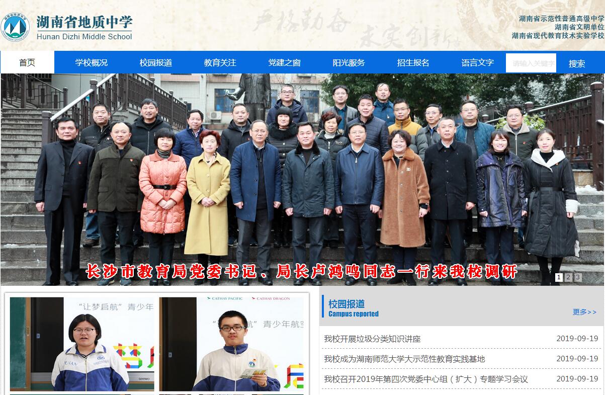 湖南省地质中学创办于1955年,原隶属湖南省地勘局,2019年移交长沙市人民政府管理,为长沙市教育局直属公办学校。2001年、2004先后被省教育厅授牌为“湖南省重点中学” “湖南省示范性普通高级中学”,2000年至2018年连续18年保持省文明单位荣誉,现被评为湖南省文明校园。学校座落长沙市中心,毗邻天心阁公园、长沙市图书城、湖南省图书馆,校园雅致,交通十分便利,是读书求学的理想之所。现有初中、高中75个教学班,在校学生3900多人。学校坚持“关爱全体学生,推进整体进步”的办学思想,拥有一支具有现代教育理念、熟练掌握现代教育技术、在省内外享有较高声誉的教师队伍,形成了“敬业爱生、精教重研”的教风。学校现有教职工379人,其中特级教师4名,正高级教师1人,高级教师126名,一级教师130名;有研究生学历的教师132名,博士学历的教师2名,教师学历合格率100%;有徐特立教育奖获得者1人,省优秀教师4人,省骨干教师培训专家2人,省市名师工作室名师团队成员2人,市骨干教师23人,市卓越教师4人。学校拥有现代化的理化生实验室、录播教室、通用技术教室、地质矿物标本展览室、教工阅览室、学生阅览室、塑胶运动场、学生食堂、体育馆、校园电视演播中心等教学设施。每间教室均安装了先进的智慧云黑板系统。新型的学生公寓可容纳500人,校图书馆藏书达二十万册。学校努力推进校园文化建设,着力打造精致精美的书香校园。学校努力推进校园文化建设,着力打造花园式校园。学校以著名科学家李四光精神为校园文化特色,积极推进素质教育,注重学生全面发展和创新精神的培养。校园文化丰富多彩,学科竞赛硕果累累。办有《湖南省地质中学报》、《星源》、《德育园地》、《地中教研》等刊物。近年来,有3000多名学生在全国、省、市所举办的数、理、化、生奥赛以及音、体、美、作文、科技小制作等竞赛中获奖。学校已成为国家CUBA篮球训练基地,篮球队多次获国家级、省、市中学生篮球竞赛的冠、亚军。男篮曾代表长沙市参加全国第七届城运会荣获第五名,创湖南篮球参加城运会史上最好成绩。武术队连续12年获全省团体冠军的好成绩。近年来,初中毕业合格率一直稳定在98%以上,高考本科上线率为 70% 以上。公费生一本上线率100%,有大批学生考入清华大学、香港中文大学、复旦大学、浙江大学、上海交通大学等国内一流高校。我校是省教育厅多次通报表扬的省示范性普通高级中学之一。学校纪律严明,学风浓厚,连续多年保持学生流失率为零、违法犯罪率为零、安全事故率为零的记录,素以管理严、设施好、师资优、质量高而深受社会的信赖。