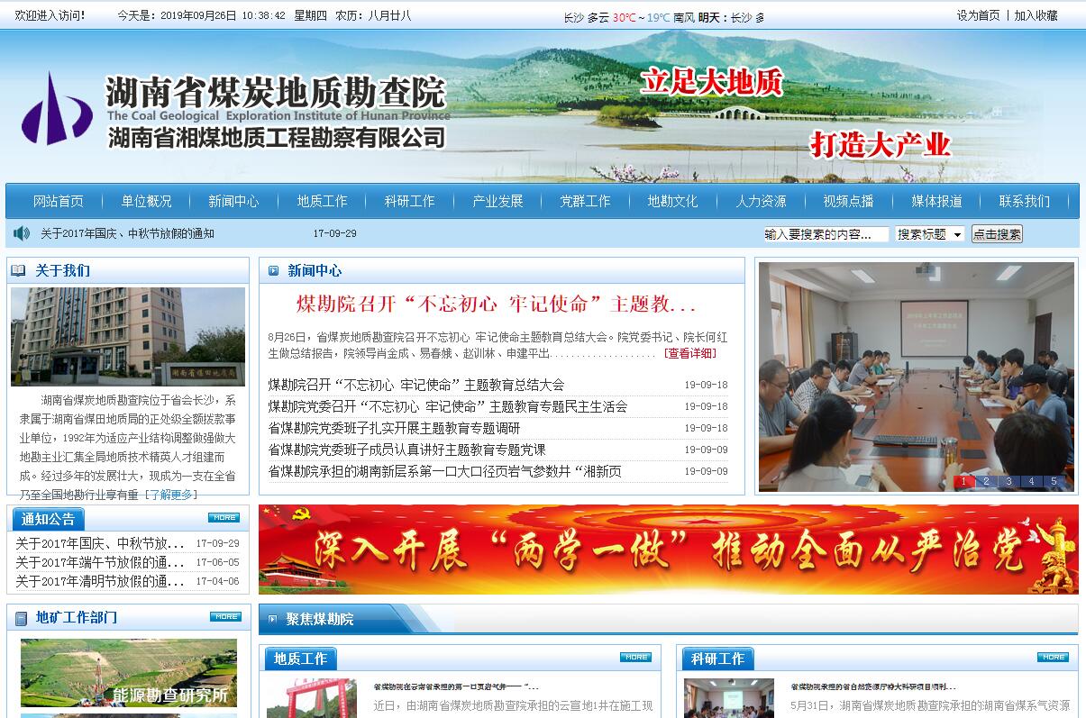 湖南省煤炭地质勘查院位于省会长沙,系隶属于湖南省煤田地质局的正处级全额拨款事业单位,1992年为适应产业结构调整做强做大地勘主业汇集全局地质技术精英人才组建而成。经过多年的发展壮大,现成为一支在全省乃至全国地勘行业享有重大影响力的综合性地质勘查科研机构,站在了全省煤炭、煤层气、页岩气等能源勘查的最前沿,同时实现了煤炭、非煤、水工环、物探、测绘、土地等国土资源产业链的全覆盖,树立了“湘煤勘”品牌。部、省各级领导多次莅临指导,《中国国土资源报》、《中国矿业报》、湖南卫视新闻联播、《湖南日报》等重要媒体均在头版头条及重要版面进行了深度报道。我院坚持“地质立院、产业兴院、管理强院”的宗旨,奉行“多找矿、找好矿、找大矿”、“出好成果、出大成果、出一批全省真正有重大影响的成果”、“勘查是硬品牌、科研是软品牌、两个品牌一起抓”、“质量是生命、效率是信誉”的工作理念,为湖南地质勘查工作做出应有贡献。我院属技术密集型单位,与湖南省湘煤地质工程勘察有限公司一事一企合体运行,下设12个二级专业所,各类专业技术人员占职工总数的80%以上,现有博士3名,硕士45名,享受国务院特殊津贴专家1人,省政府特殊津贴专家1人,教授级高级工程师6人(二级教授级高级工程师1人),高级工程师65人,国家储量评估师2人,注册执业资格从业人员28人,局学科带头人3名,局首席工程师11名,省各专业知名评审专家多人。湖南省煤田地质局以我院为支撑平台,经国家人力资源与社会保障部批准设立了博士后科研工作站。我院地质工作集煤炭勘查、非煤勘查、水工环勘查、气体矿产勘查、矿山设计、物探测井、测量工程、地质技术服务、工程咨询、地灾勘查施工、土地整理及土地规划评估于一体。现拥有区域地质调查、固体矿产勘查、液体矿产勘查、气体矿产勘查、水文地质、工程地质、环境地质调查、地球物理勘查、地球化学勘查、地质钻探、工程勘察、地质灾害危险性评估、地质灾害治理工程设计、地质灾害治理工程勘查、地质灾害治理工程施工、测绘等十四项甲级资质以及冶金矿山设计乙级、煤矿设计乙级、土地规划乙级、国家发改委工程咨询、环保工程专业承包叁级等资质,通过了在地勘单位最先批次的质量、环境和职业健康安全等认证,为省内地勘行业资质最全、等级最高的单位,也是湖南省第一家具有气体矿产甲级资质的单位。“十二五”以来,院煤炭地质工作在全省真正实现了:“找煤成果第一、技术服务第一、成果质量第一”。共完成煤炭勘查项目28个,探获备案煤炭资源量7亿多吨,“三下”(构造下、老地层下、红层下)找煤2亿多吨,用占全省同期公益投入10%的资金探获煤炭资源量占全省的50%以上,全省“十二五”以来探获的7个中型以上煤炭矿区(5000万吨以上)中前5名均为我院勘查,地勘质量全在优良以上,荣获湖南省煤田地质局目前唯一的特别重大找矿成果奖1项,重大找矿成果奖4项。“攸县兰村矿区深部煤炭详查报告”采用先进的技术手段和综合对比方法解决了该区历史上悬而未决的煤、岩层对比技术难题,探获煤炭资源量1.7亿吨,在湖南省首次获评“2013年度中国十大地质找矿成果奖”。“攸县黄兰矿区煤炭整装勘查”共计探获煤炭资源量3.4亿吨,开创了“公益先行、商业跟进、整装勘查、快速突破、尽快开发”的勘查新模式,创下南方缺煤省份找大矿的历史性突破。我院技术服务涵盖了全省主要产煤市县,以精良的服务赢得了客户的广泛赞誉。“十二五”以来,我院响应省委省政府号召,积极践行“气化湖南”战略,完成煤层气、煤系气、页岩气资源研究及勘查项目47项,完成了全省第一个研究、参数井、探井、单井综合评价项目,建立了全省第一家资质设备齐全的煤层气、页岩气测井队伍,率先在国内将页岩气、煤层气研究引入到铁路、公路隧道设计施工评价中,实质性推动了湖南省页岩气、煤层气产业的发展。“十二五”以来相继建立了全省第一个气体矿产勘查研究所,全局第一个非煤勘查研究所、土地规划咨询所,同时建立了专门的测绘地理信息所。此外在水工环及灾害地质、矿山设计、物探测井等方面也取得了长足发展,实现了国土资源产业链的全覆盖,与多市县、多企业建立了长期战略合作关系,用多元支撑的产业格局赢得了新一轮发展先机和市场竞争的主动。通过开展“技术质量管理年”、“管理建设年”、“党纪条规教育年”、“品牌建设年”等一系列活动,修改、制定了一系列管理制度,建立了完善的院制度管理体系。在省局的领导下,结合党的群众路线教育、“三严三实”专题教育、“两学一做”学习教育等活动,打造“温暖党建”。组织开展了阳光心态建设、“青春励志游,劳模当导游”、“三严三实”体验式劳动、红色基地党员学习教育、“我与煤田”征文比赛等系列活动,提升了广大党员的党性修养,增强了党组织的战斗堡垒作用,丰富了党建工作内涵,传递了党员正能量。在文化建设上,坚持以人为本,结合工作特点,不断创新活动载体,通过开展“道德讲堂”、“青年人才座谈会”、“专业所恳谈会”、“学术论坛”等活动构建了良好的文化生态。其中全员参与的“职工文化节”活动,历时一年,以书画、摄影、演讲、球类、歌唱、舞