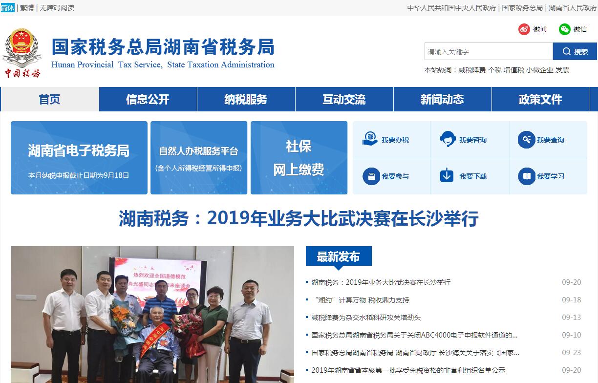 国家税务总局湖南省税务局的主要职责是:(一)负责贯彻执行党的路线、方针、政策,加强党的全面领导,履行全面从严治党责任,负责党的建设和思想政治建设工作。(二)负责贯彻执行税收、社会保险费和有关非税收入法律、法规、规章和规范性文件,研究制定具体实施办法。组织落实国家规定的税收优惠政策。(三)负责研究拟定本系统税收、社会保险费和有关非税收入中长期规划,参与拟定税收、社会保险费和有关非税收入预算目标并依法组织实施。负责本系统税收、社会保险费和有关非税收入的会统核算工作。组织开展收入分析预测。(四)负责开展税收经济分析和税收政策效应分析,为国家税务总局和省委、省政府提供决策参考。(五)负责所辖区域内各项税收、社会保险费和有关非税收入征收管理。组织实施税(费)源监控和风险管理,加强大企业和自然人税收管理。(六)负责组织实施本系统税收、社会保险费和有关非税收入服务体系建设。组织开展纳税服务、税收宣传工作,保护纳税人、缴费人合法权益。承担涉及税收、社会保险费和有关非税收入的行政处罚听证、行政复议和行政诉讼事项。(七)负责所辖区域内国际税收和进出口税收管理工作,组织反避税调查和出口退税事项办理。(八)负责组织实施所辖区域内税务稽查和社会保险费、有关非税收入检查工作。(九)负责增值税专用发票、普通发票和其他各类发票管理。负责税收、社会保险费和有关非税收入票证管理。(十)负责组织实施本系统各项税收、社会保险费和有关非税收入征管信息化建设和数据治理工作。(十一)负责本系统内部控制机制建设工作,开展对本系统贯彻执行党中央、国务院重大决策及上级工作部署情况的督查督办,组织实施税收执法督察。(十二)负责本系统基层建设和干部队伍建设工作,开展领导班子和后备干部队伍建设,承担税务人才培养和干部教育培训工作。负责本系统绩效管理和干部考核工作。(十三)负责本系统机构、编制、经费和资产管理工作。(十四)完成国家税务总局和省委、省政府交办的其他工作。
