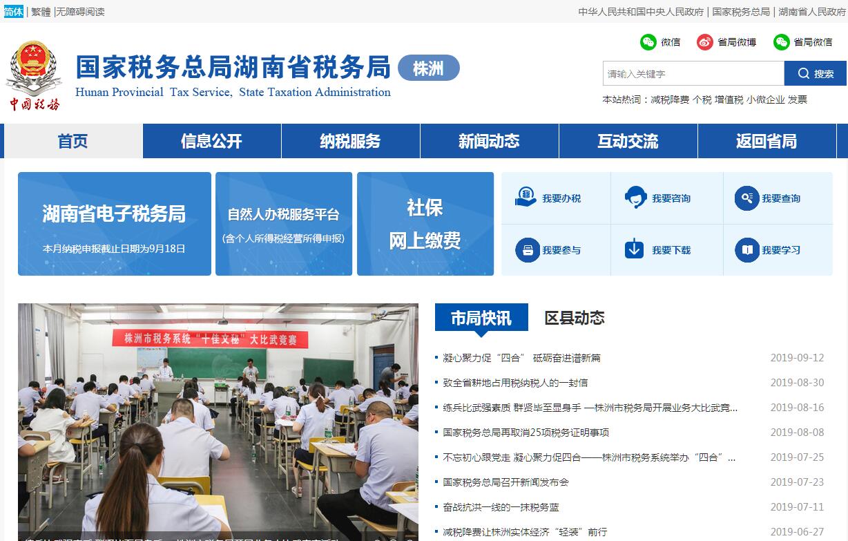 国家税务总局株洲市税务局的主要职责是:(一)负责贯彻执行党的路线、方针、政策,加强党的全面领导,履行全面从严治党责任,负责党的建设和思想政治建设工作。(二)负责贯彻执行税收、社会保险费和有关非税收入法律法规、规章和规范性文件,研究制定具体实施办法。组织落实国家规定的税收优惠政策。(三)负责研究拟定本系统税收、社会保险费和有关非税收入中长期规划,参与拟定税收,社会保险费和有关非税收入预算目标并依法组织实施。负责本系统税收、社会保险费和有关非税收入的会统核算工作。组织开展收入分析预测。(四)负责开展税收经济分析和税收政策效应分析,为国家税务总局湖南省税务局和市委、市政府提供决策参考。(五)负责所辖区域内各项税收、社会保险费和有关非税收入征收管理。组织实施税(费)源监控和风险管理,加强重点税源企业和自然人税收管理。(六)负责组织实施本系统税收、社会保险费和有关非税收入服务体系建设。组织开展纳税服务、税收宣传工作,保护纳税人、缴费人合法权益。承担涉及税收、社会保险费和有关非税收入的行政处罚听证、行政复议和行政诉讼事项。(七)负责所辖区域内国际税收和进出口税收管理工作,组织反避税调查和出口退税事项办理。(八)负责组织实施所辖区域内税务稽查和社会保险费、有关非税收入检查工作。(九)负责增值税专用发票、普通发票和其他各类发票管理。负责税收、社会保险费和有关非税收入票证管理。(十)负责组织实施本系统各项税收、社会保险费和有关非税收入征管信息化建设和数据治理工作。(十ー)负责本系统内部控制机制建设工作,开展对本系统贯彻执行上级部门重大决策及工作部署情况的督查督办,组织实施税收执法督察。(十ニ)负责本系统基层建设和干部队伍建设工作,开展领导班子和后备干部队伍建设,承担税务人才培养和干部教育培训工作。负责本系统绩效管理和干部考核工作。(十三)负责本系统机构、编制、经费和资产管理工作。(十四)完成国家税务总局湖南省税务局和市委、市政府交办的其他工作。